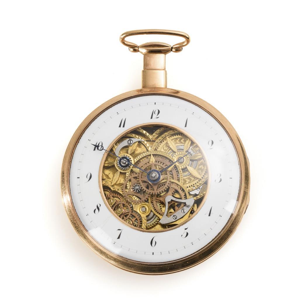 Rare, large skeletonized gold pocket watch with quarter repeater.