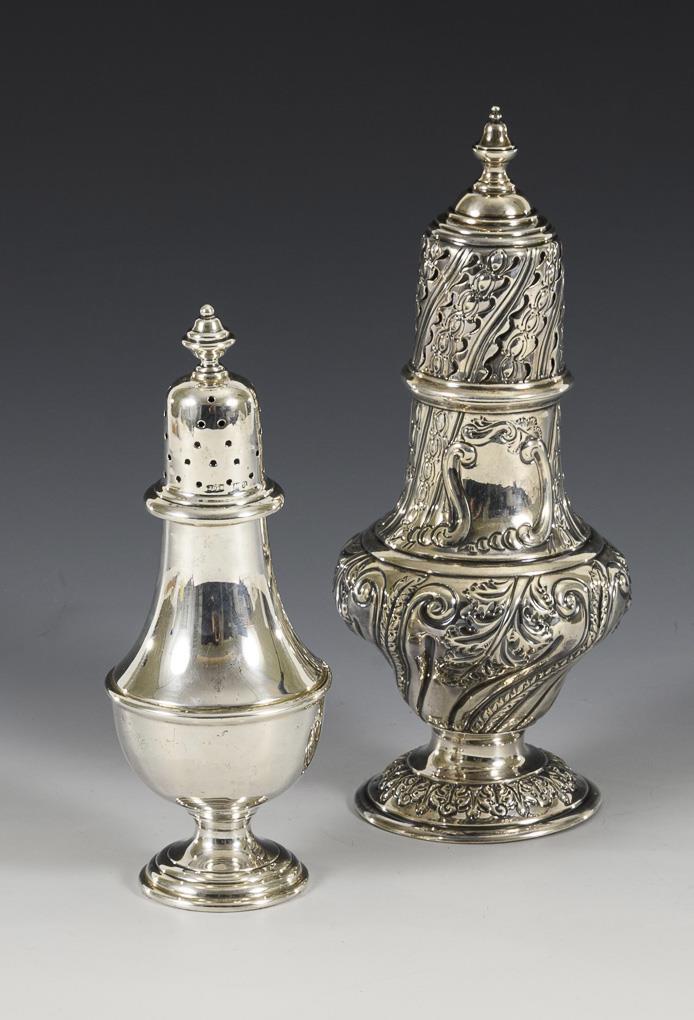 2 English silver shakers. James Dixon & Sons.
