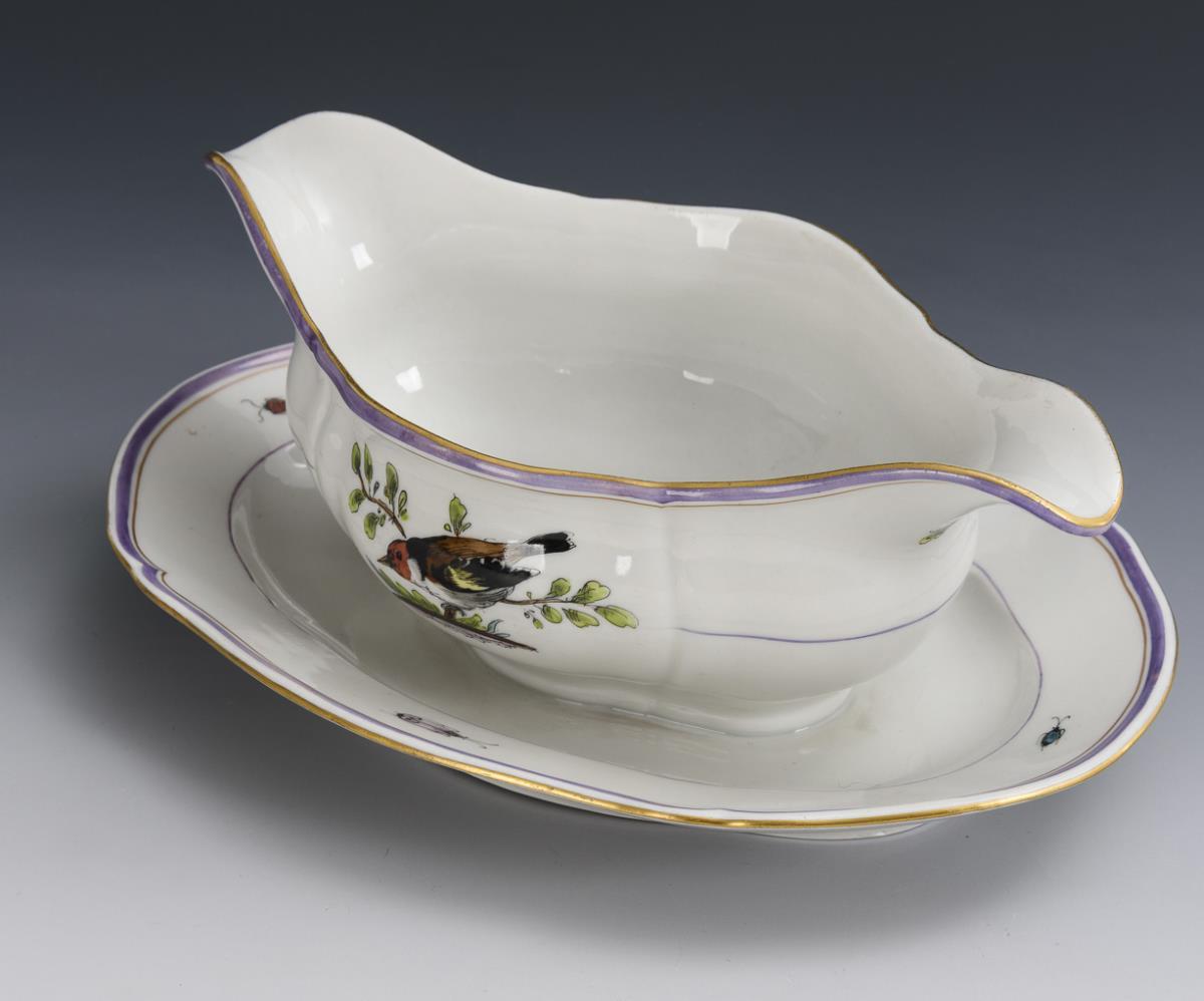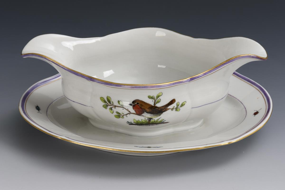 Sauciere with bird and insect painting. KPM Berlin.
