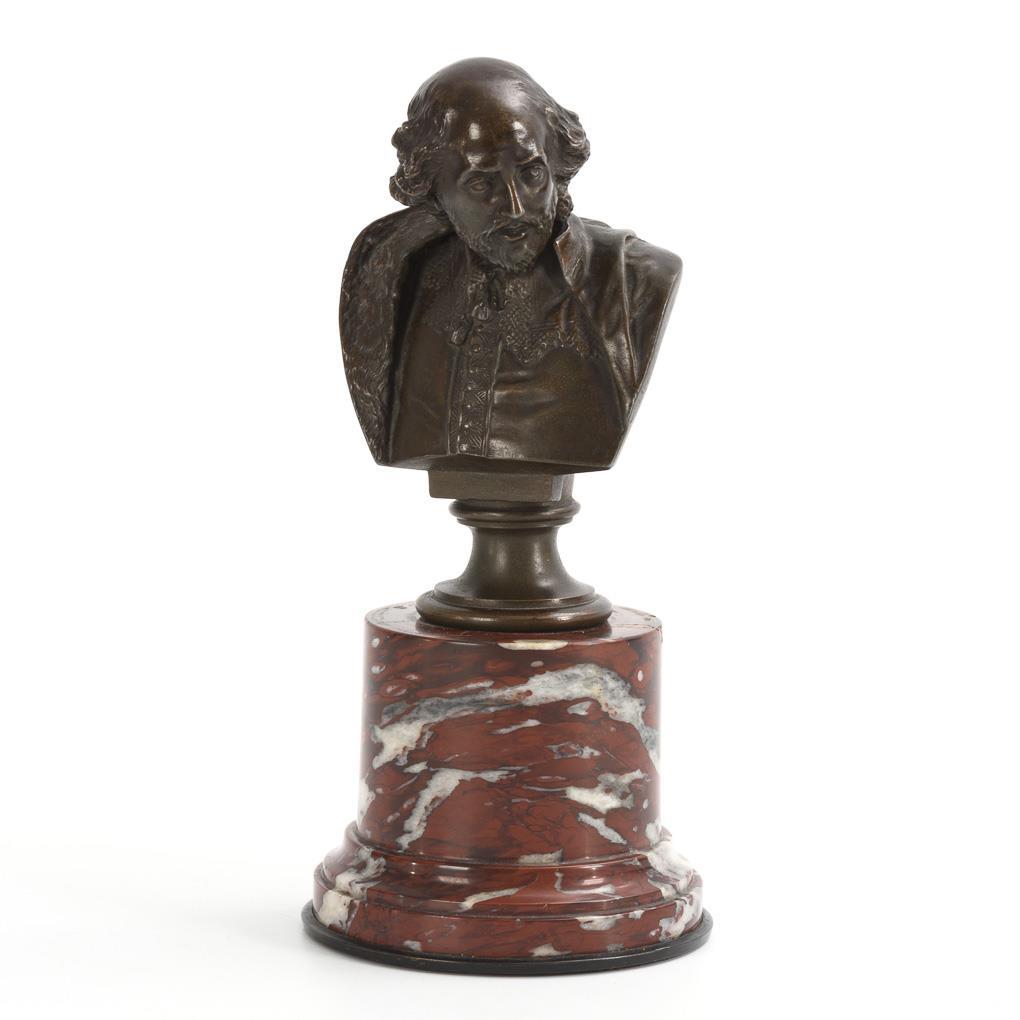 On high base mounted portrait of the poet. Patina minimally rubbed.