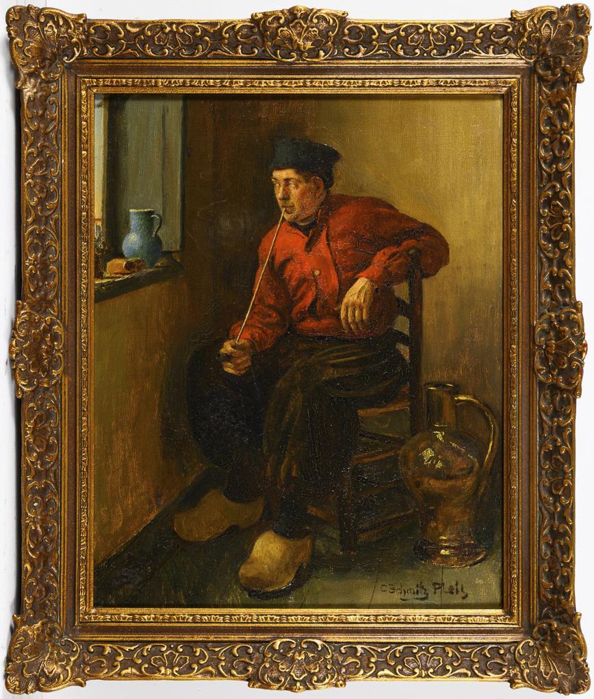 Picture of a Dutch fisherman with pipe in the parlor. Slight signs of age.