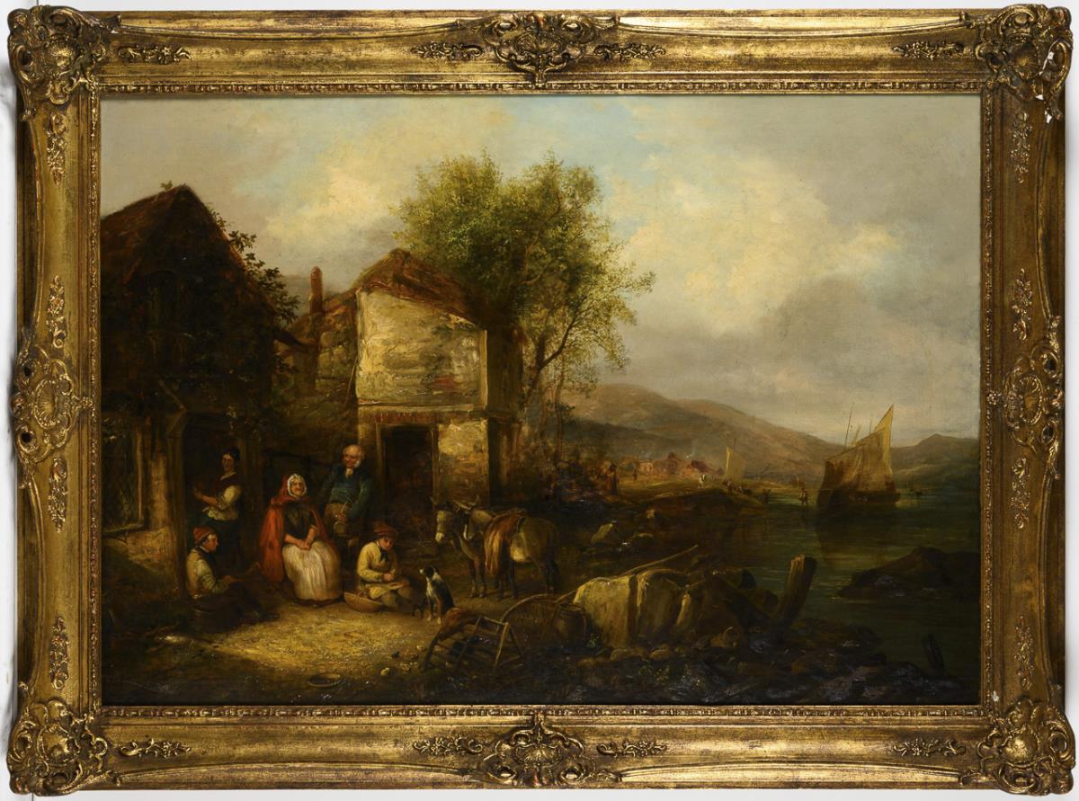 Large genre scene with fishing family in front of the kate