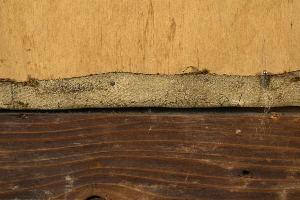 Oil/canvas, loose on wooden panel. Verso on folded canvas indistinctly signed. 19th c.