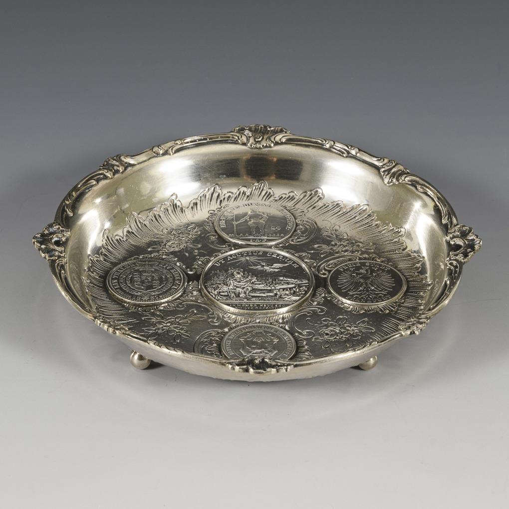 Silver historicism coin bowl. J.D. Schleissner & Sons, Hanau.