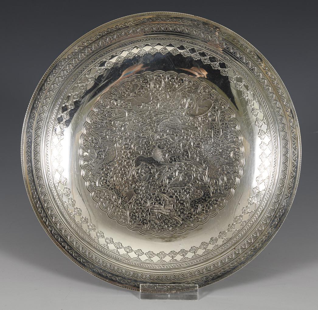Egyptian richly engraved bowl with dense animal pattern in the mirror. / Round bowl (Wilkens) with curved rim. / Small plate or saucer (Italy) with curved rim.
