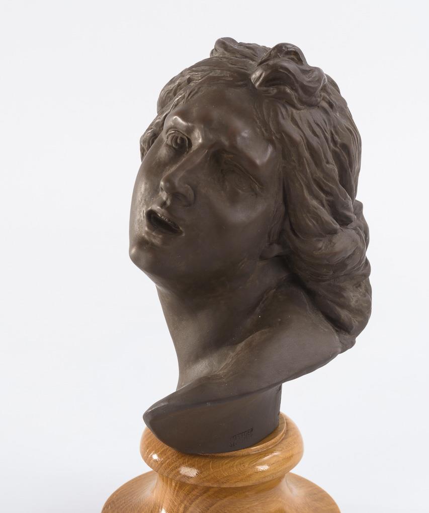 Bust of Proserpina from the famous in 1621/22 created figure group "The Rape of Proserpina" by Gianlorenzo Bernini in the Villa Borghese in Rome. Small crack in the wooden base.