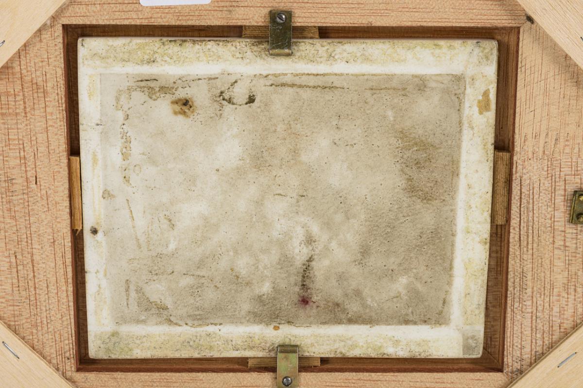 Polychrome painted. 15.2 x 12.5 cm, in wooden frame (24 x 21 cm).
