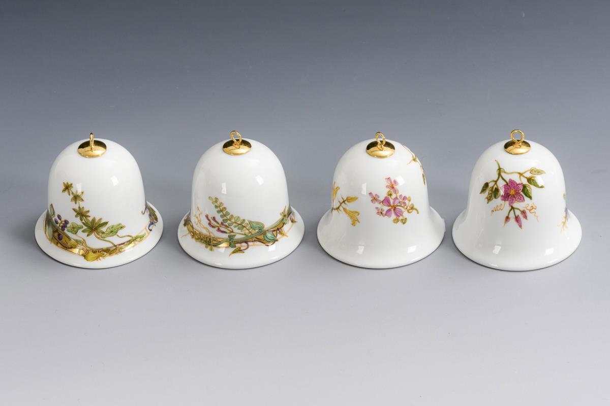 4 bells with floral painting. Meissen.