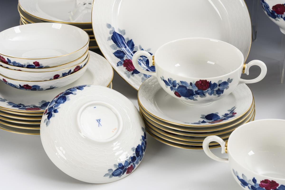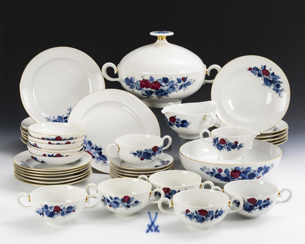 Dinner service "Purple rose with blue leaves". Meissen.