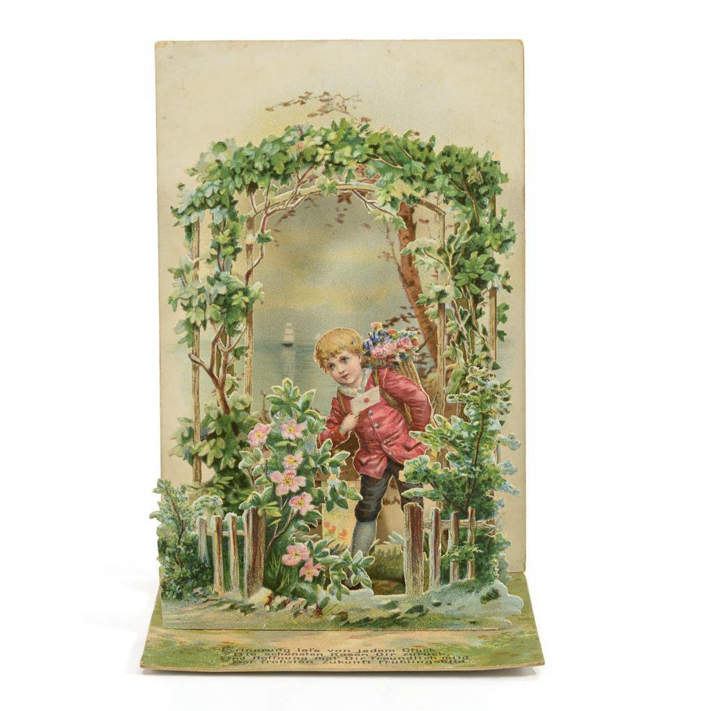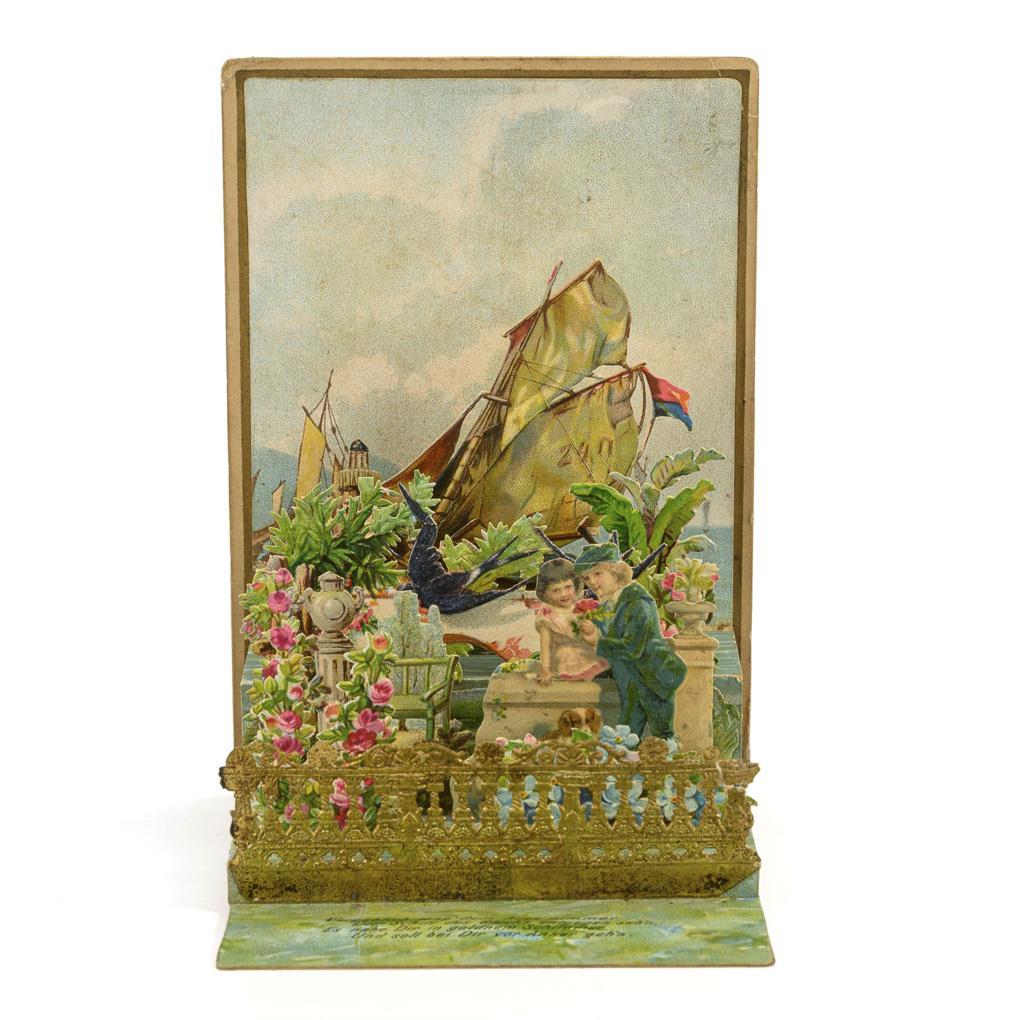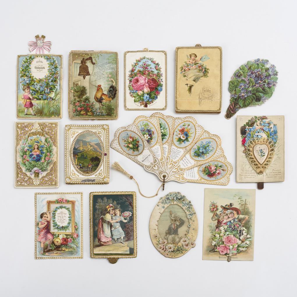 Train cards and folding cards, some unfolding in several layers, including 1 double folding envelope back with train image. 1 usable fan. Few signs of age / wear.