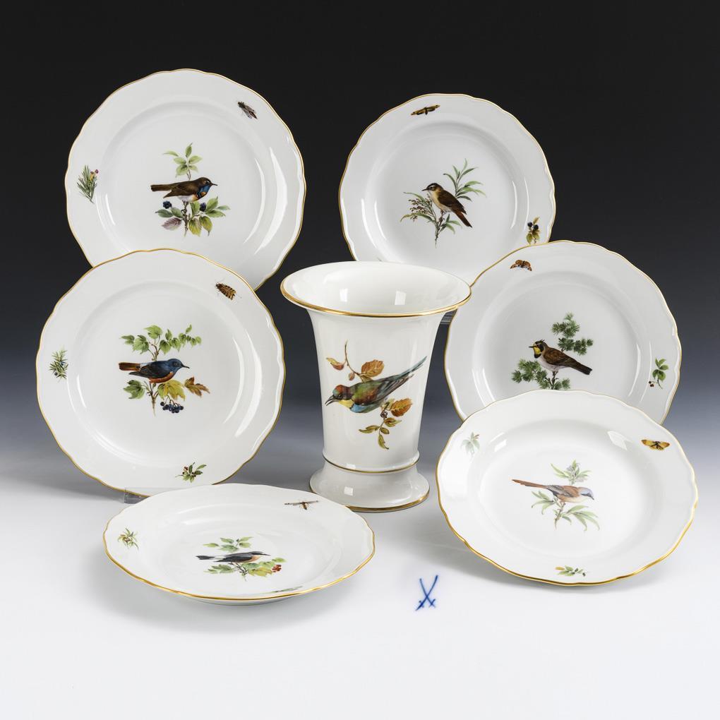 6 dinner plates form "New Cutout" (Ø 22,5 cm). / 1 crater vase (H 19,5 cm).