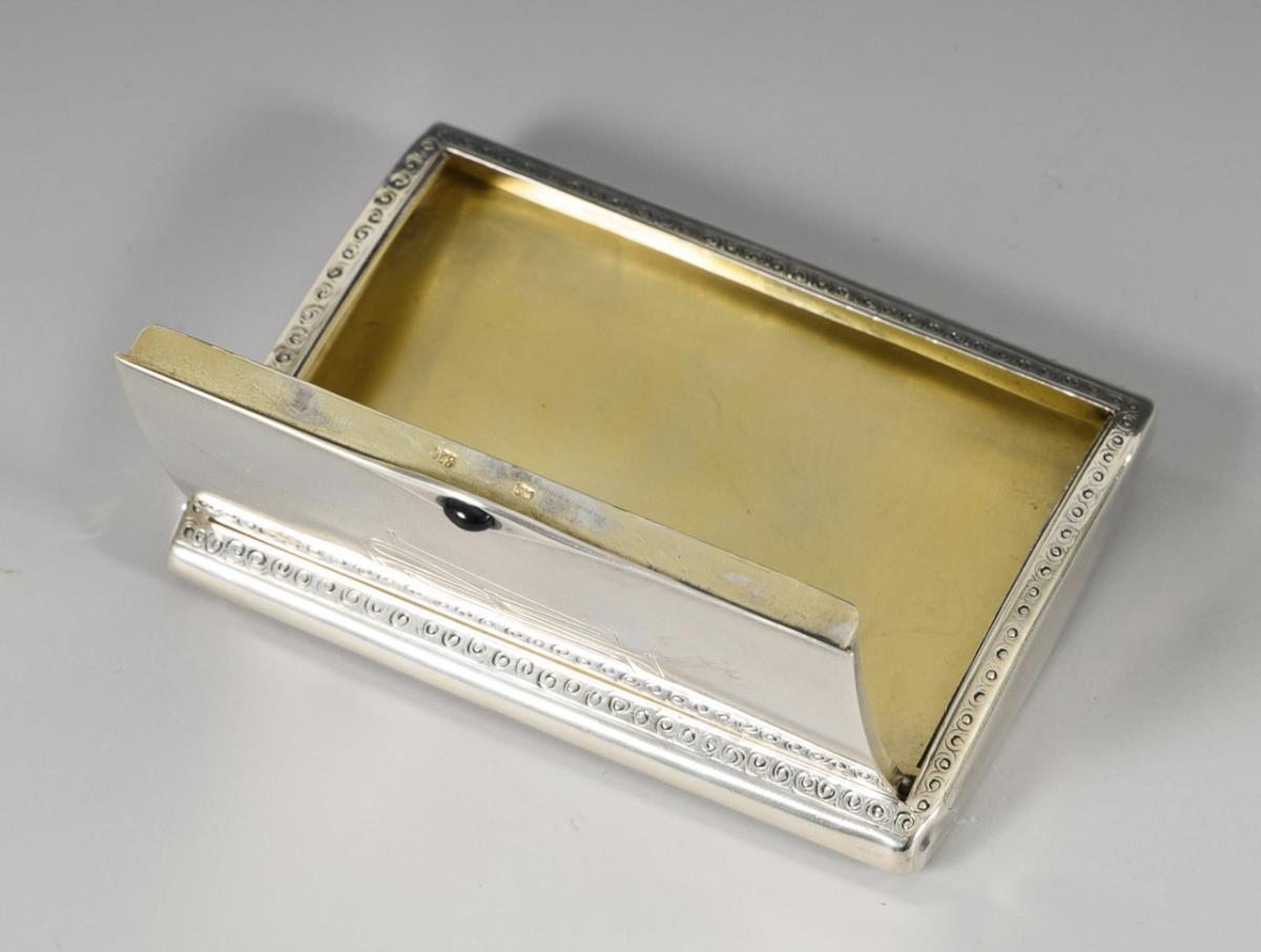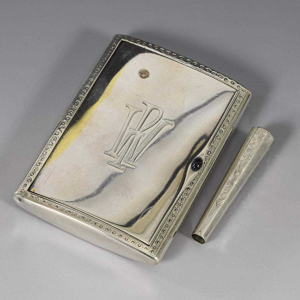 Smooth case with monogram engraving "WP" and blue cabochon on clasp (indistinct hallmark/920 hallmarked). / Finely engraved mouthpiece (stamped 835), L 5.5 cm. Slight signs of wear.