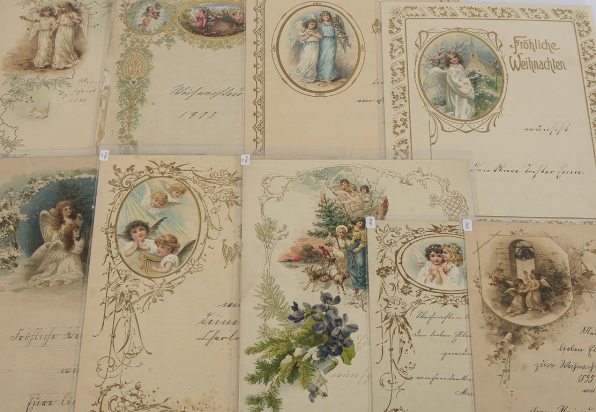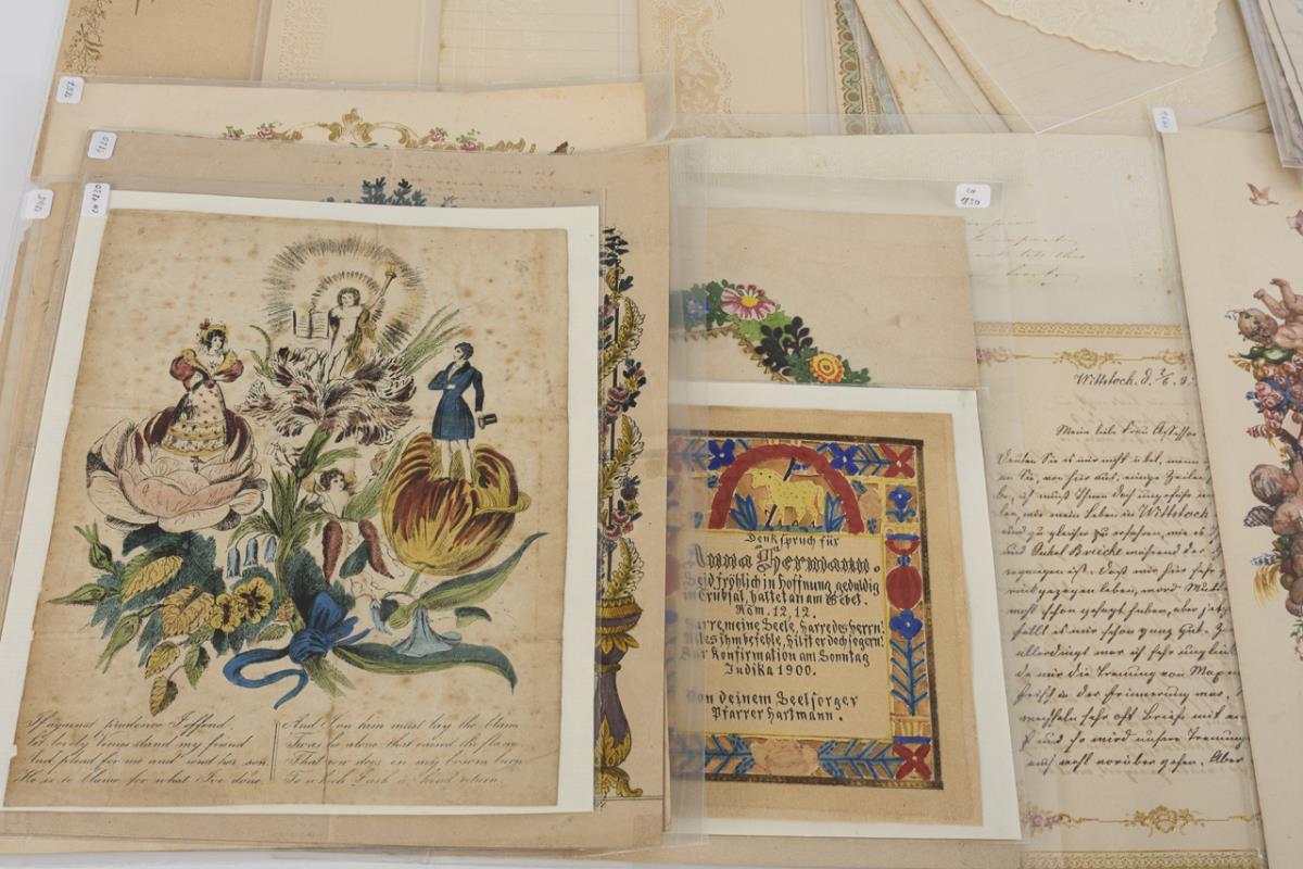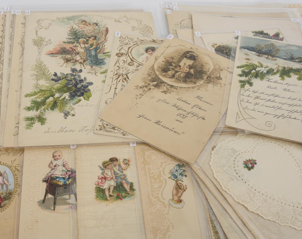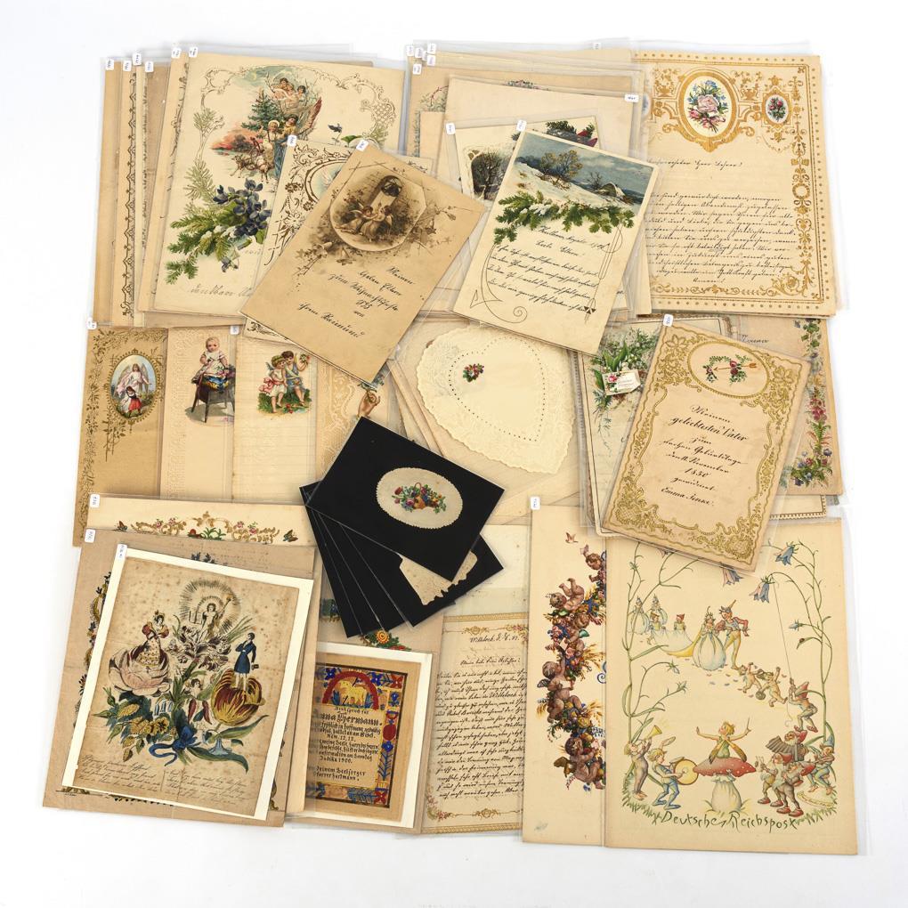Letters on various occasions: Christmas, New Year, birthday, confirmation, wedding, etc., as well as telegrams of the German Reichspost. Furthermore, blank embossed stationery with applied wafers as well as embossed letterheads. Partly age / use traces.
