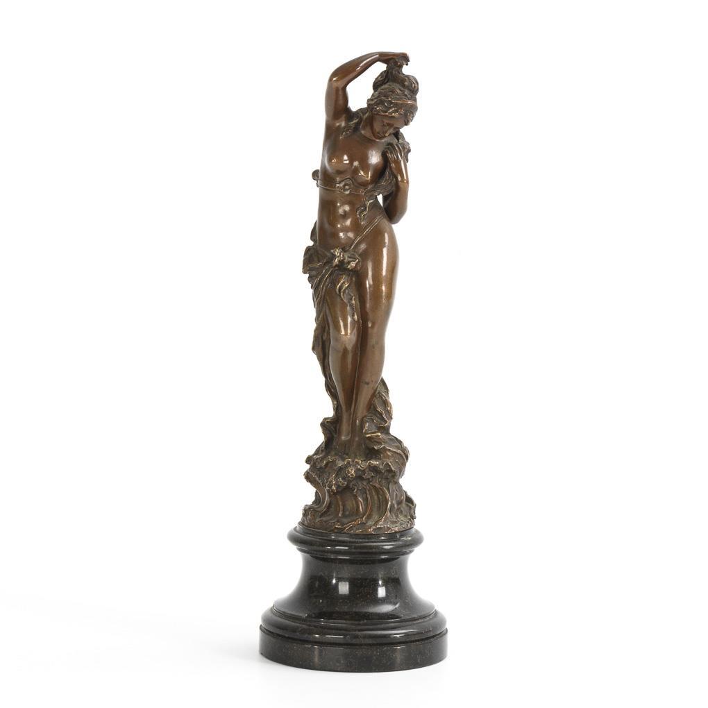 Bronze patinated, serpentine base. Inscribed with addition "91". H 20,5 / 25 cm.