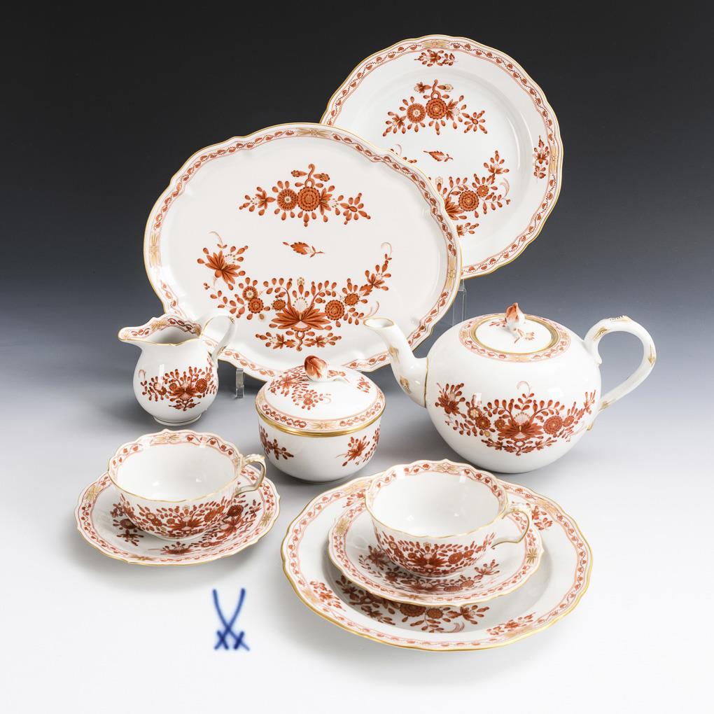10 pieces for a dejeuner "Coral Red Indian Painting". Meissen.