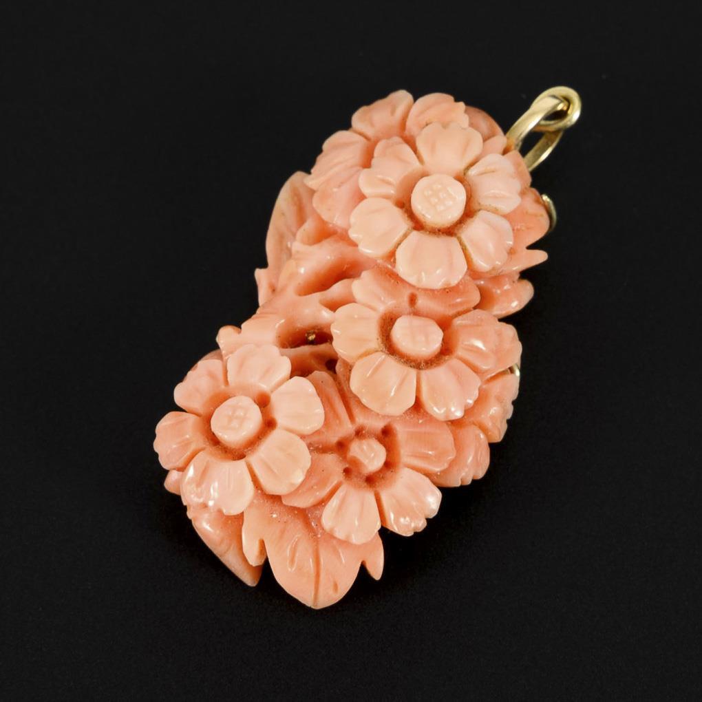 Cut flower branch claw-set on reverse bar mount with large eyelet.