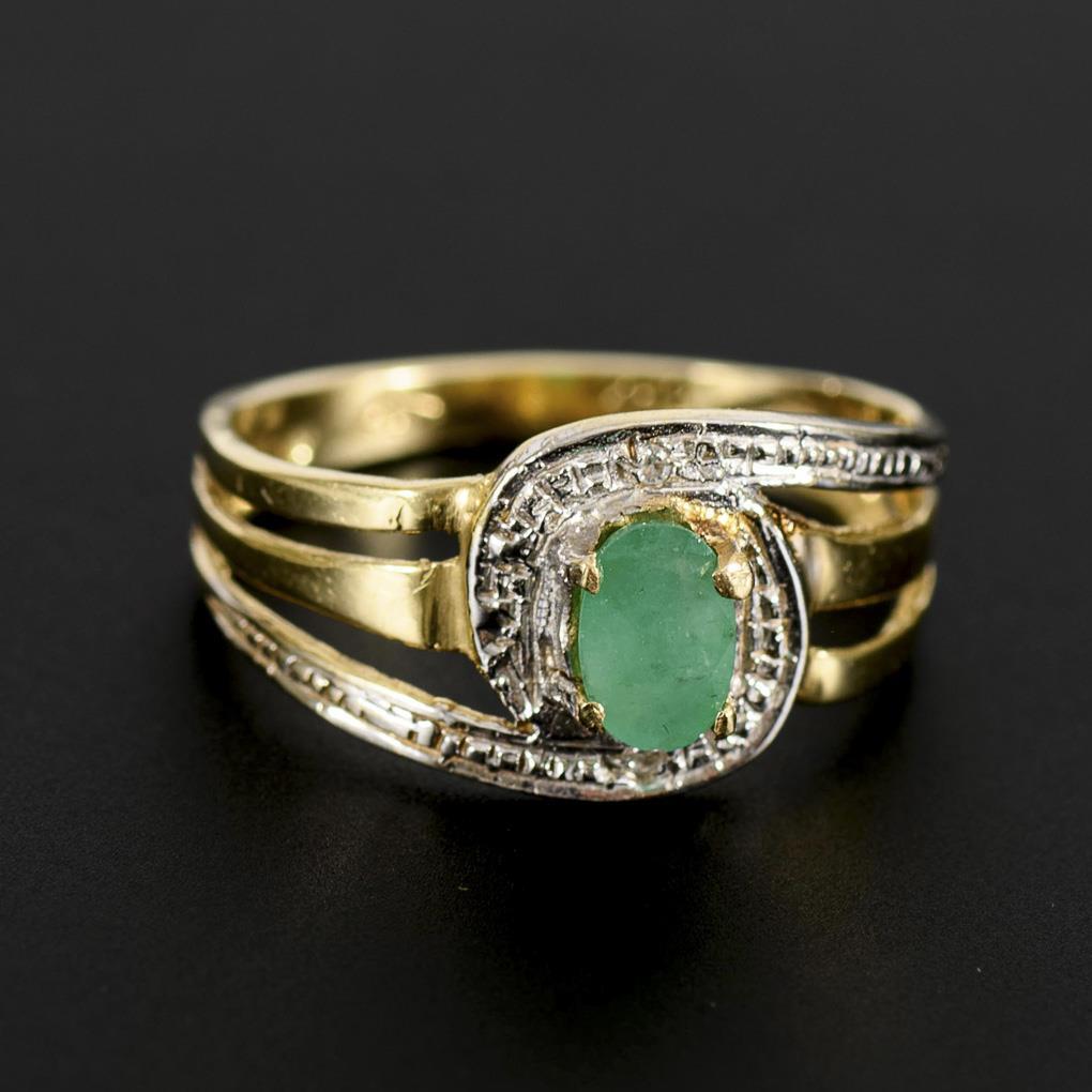 Dimple set emerald between 3-bar shoulder and narrow rail.