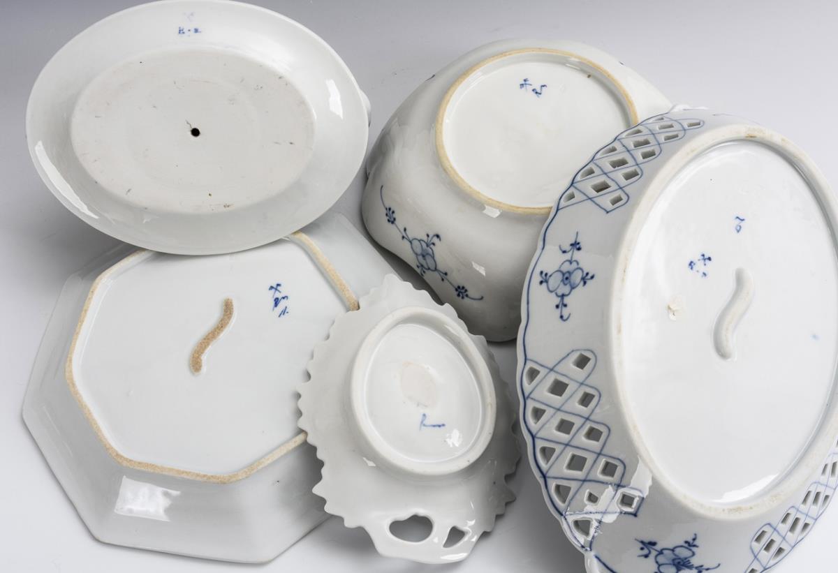 Breakthrough bowl (L 26,5 cm), oval bowl (L 26 cm), leaf bowl (L 14,5 cm), square bowl (16 x 16,5 cm), octagonal bowl (Ø 21 cm), hand candlestick (Ø 12,5 cm) and sauce boat (L 17 cm).
