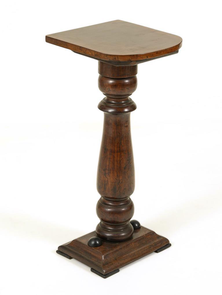 Decorative floral column on baluster center support and rectangular base decorated with 2 hemispheres, rectangular top plate with 2 rounded corners. Restored ready for living.
