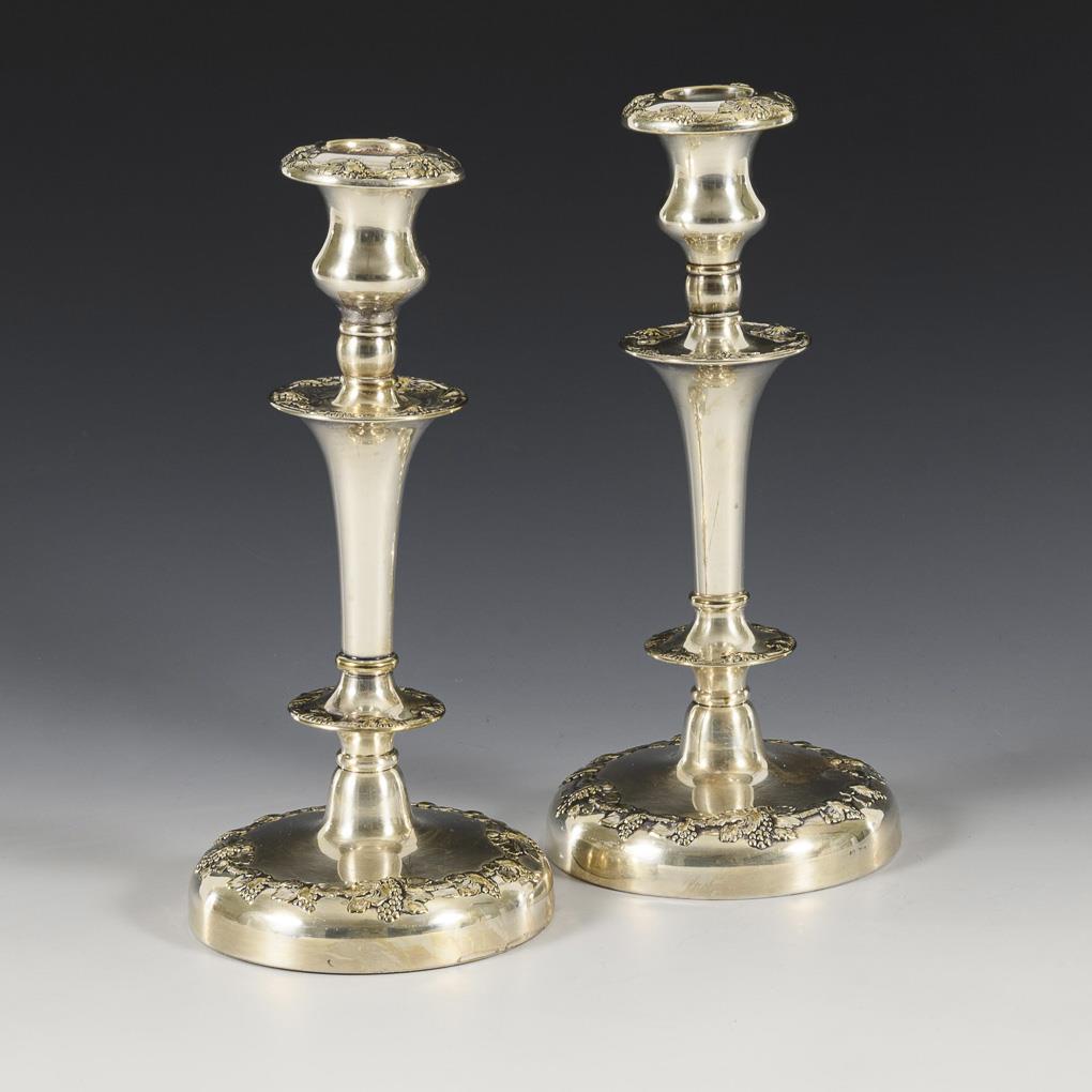Pair of silver plated candlesticks.