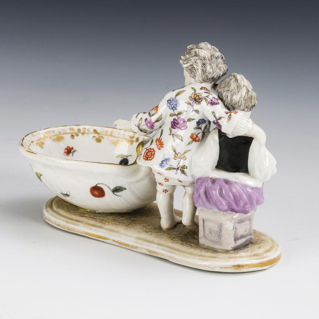 A pair of children. Partial gold rubbing, fire crack between bowl and plinth standing at a shell with Kauffahrteimalerei.