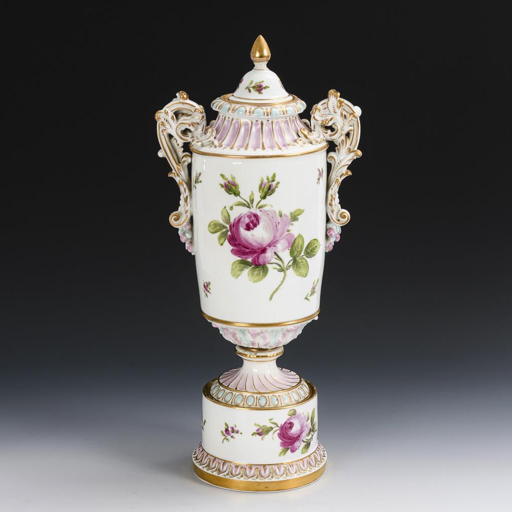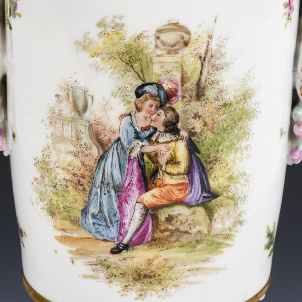 Large lidded vase with Watteau painting.