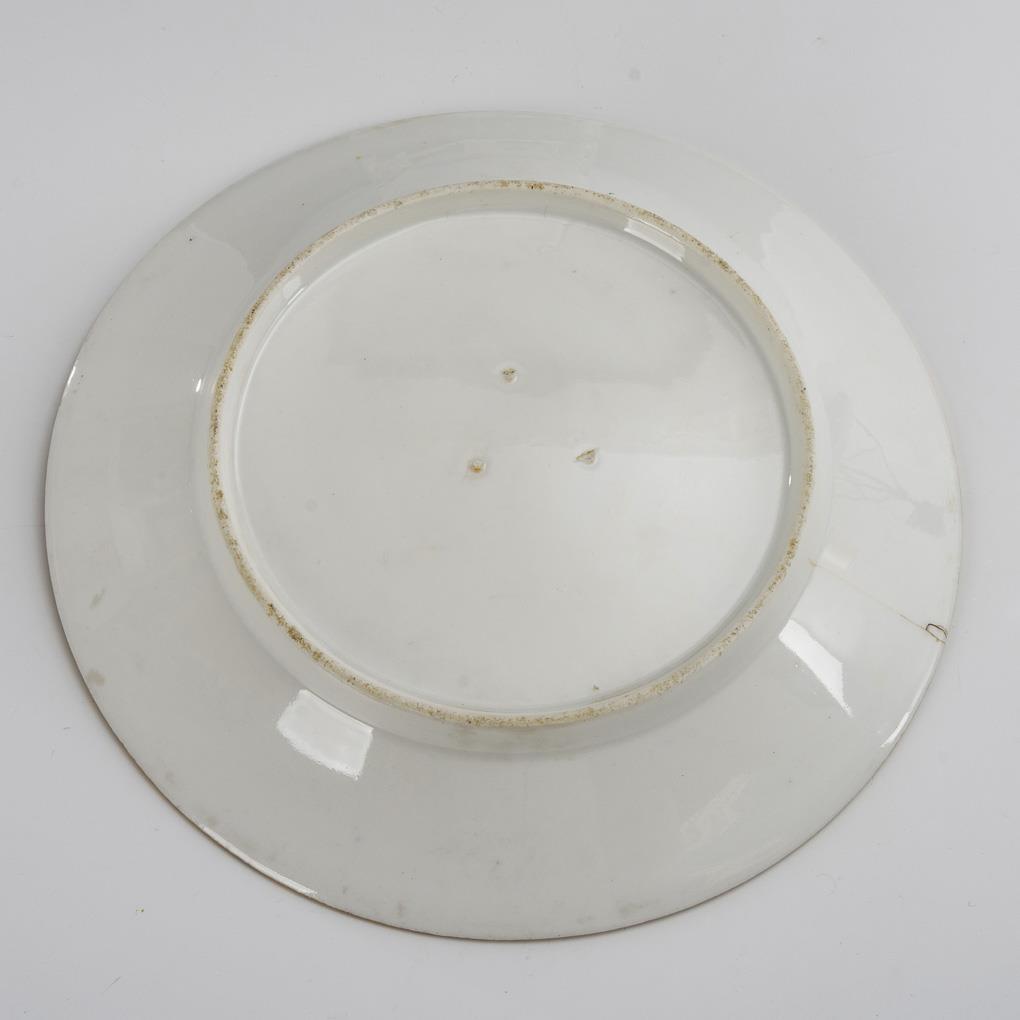 Polychrome painted, gold decorated. Ø 23 cm.
