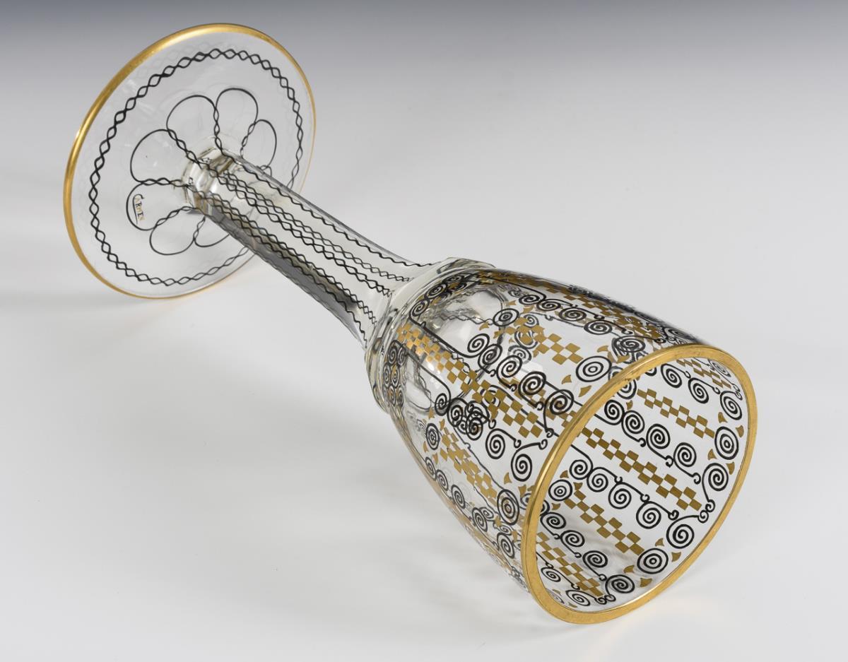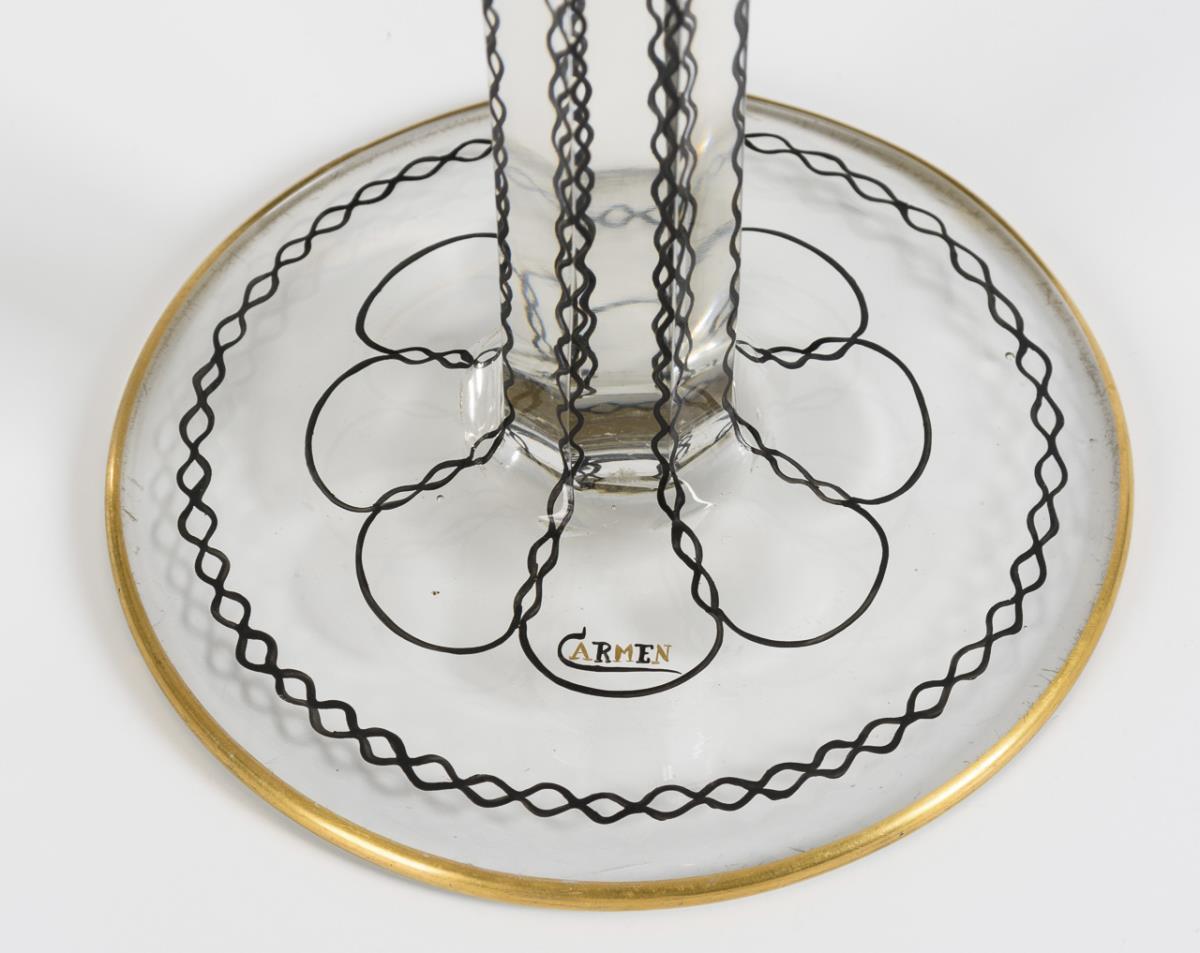 Colorless glass, geometric painting in black solder and gold. H 33 cm.