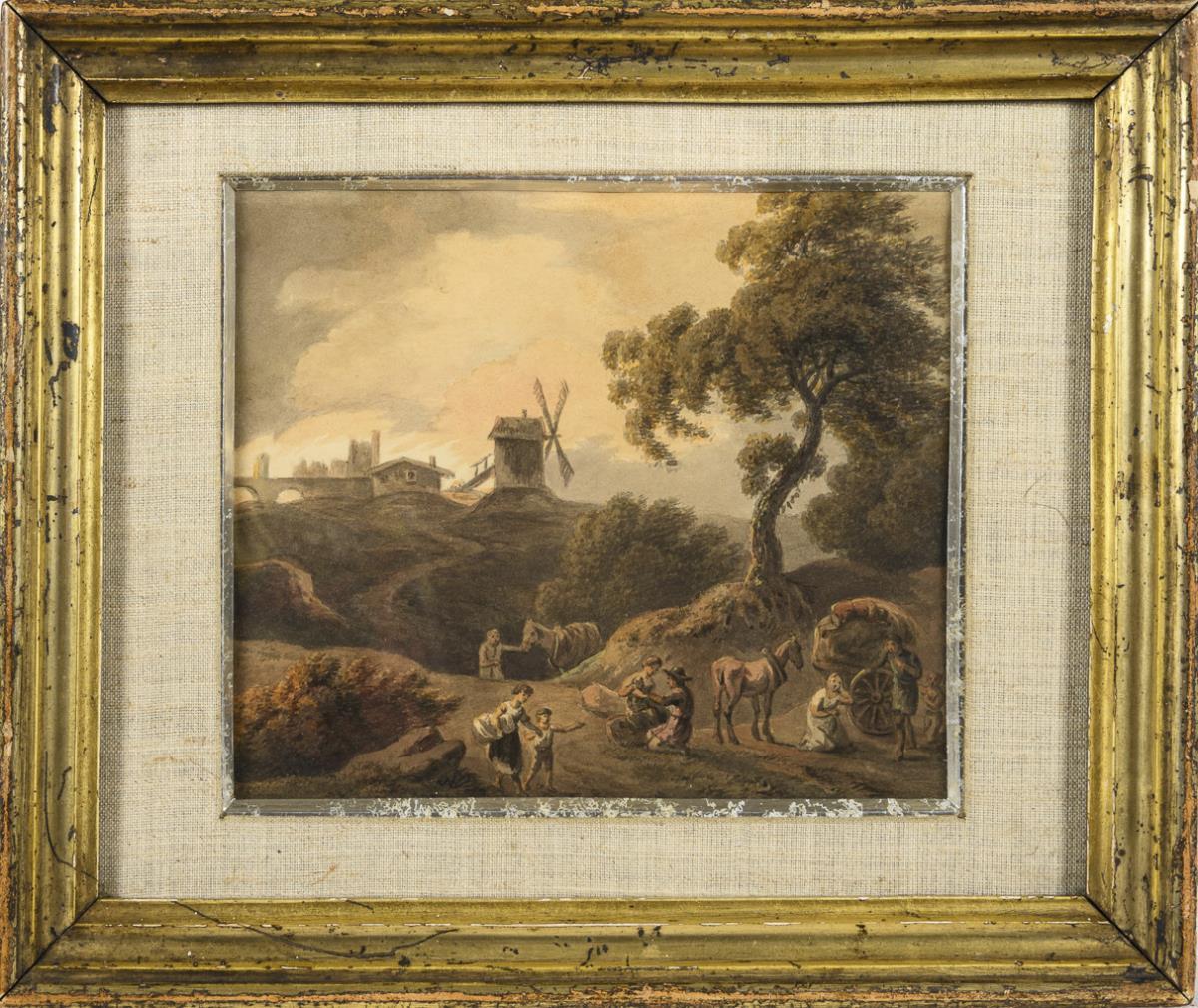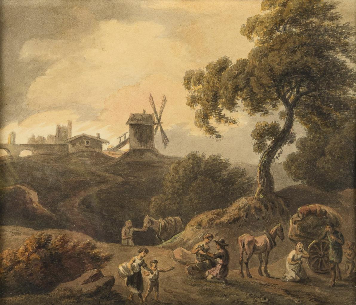 Landscape with windmill and resting farmers