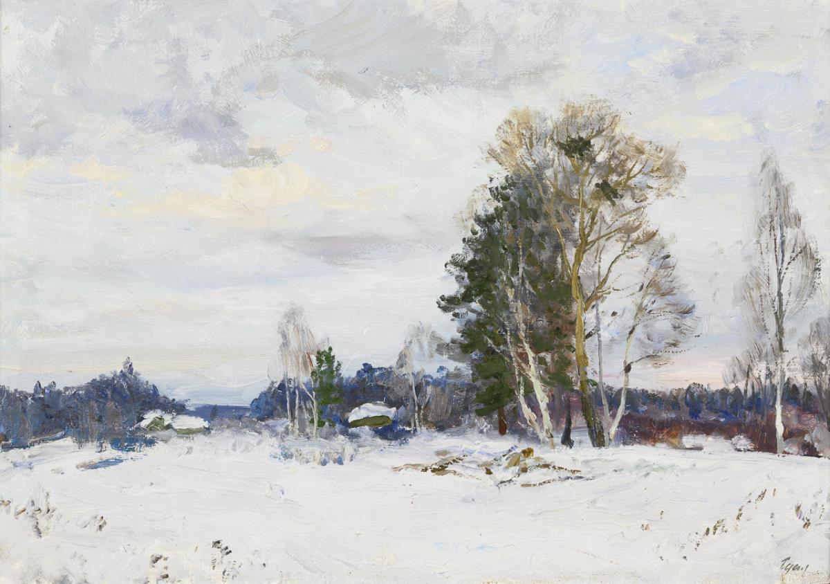Oil / canvas. Signed in Cyrillic lower right, inscribed/titled in Cyrillic on verso.