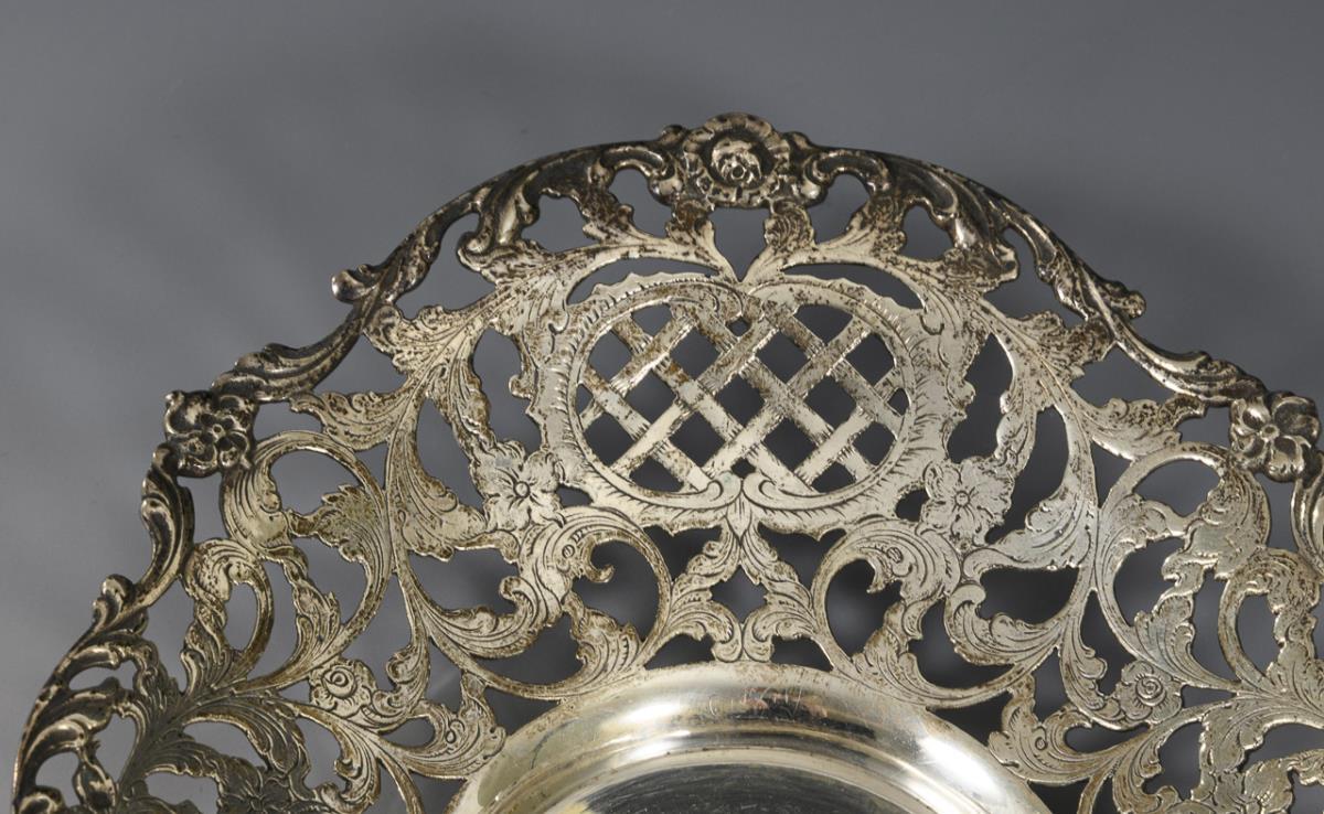 Oval bowl with floral openwork wall and rocaille decoration.
