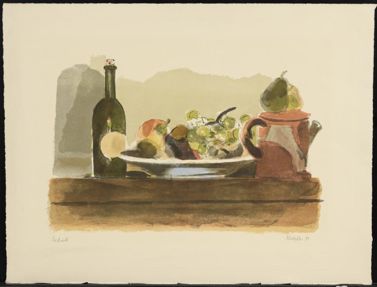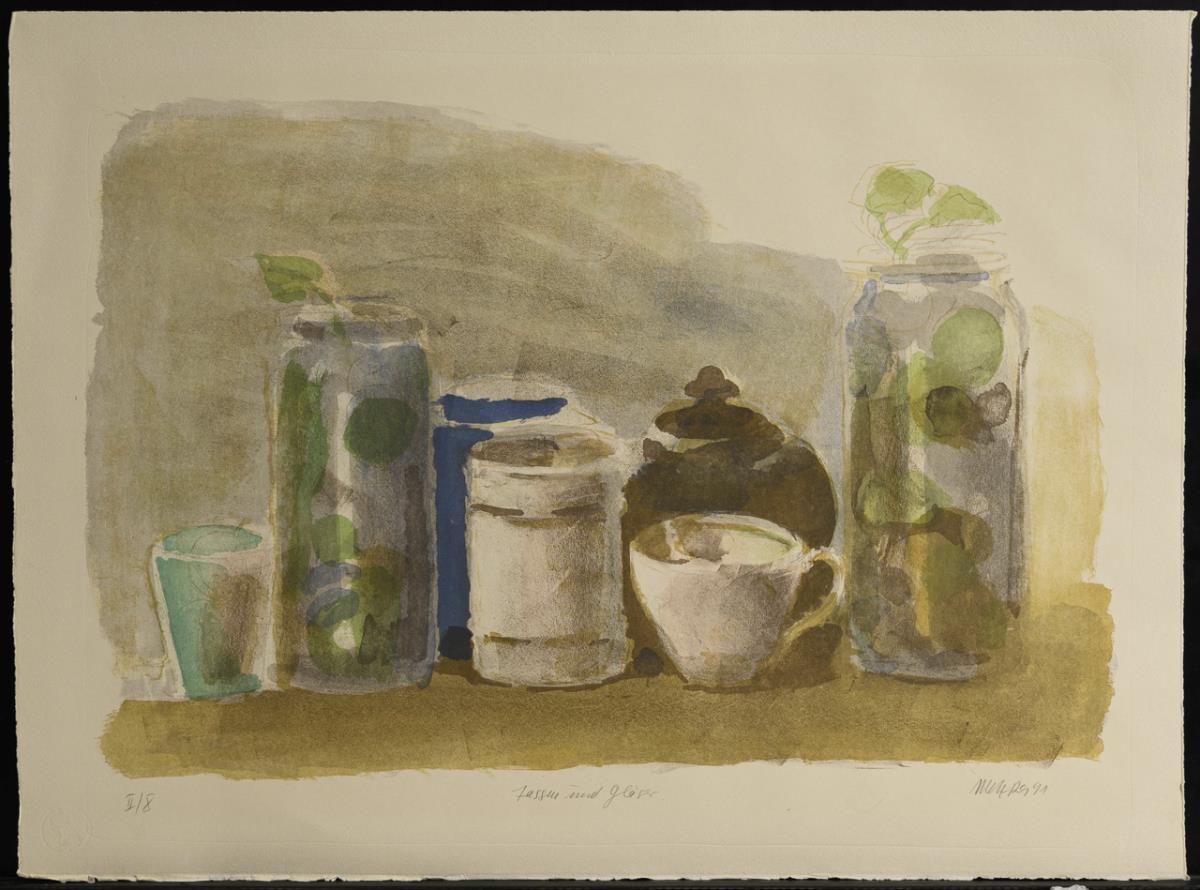 "Cups and glasses", [19]91, copy: II/X | Untitled, proof, [19]94, embossed stamp "Steinhanddruck Hans Wilfert".