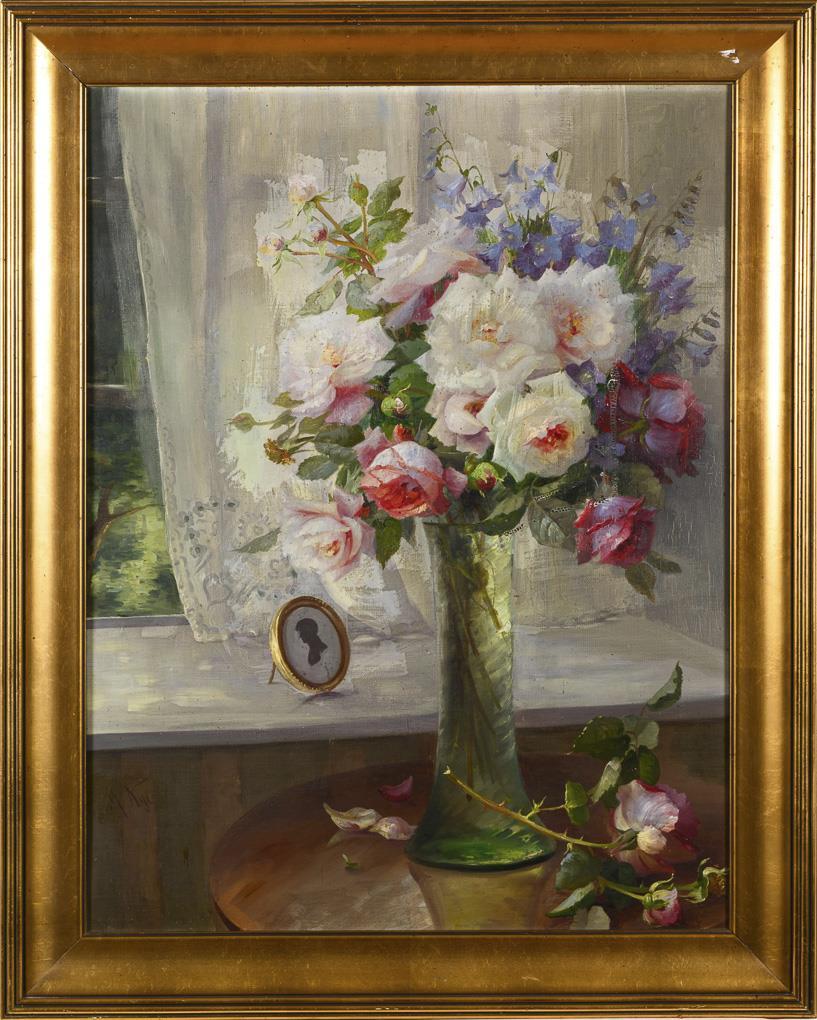 Oil/canvas. Signed lower left, verso remnants of an adhesive label of the art dealer Adrian Brugger Munich.