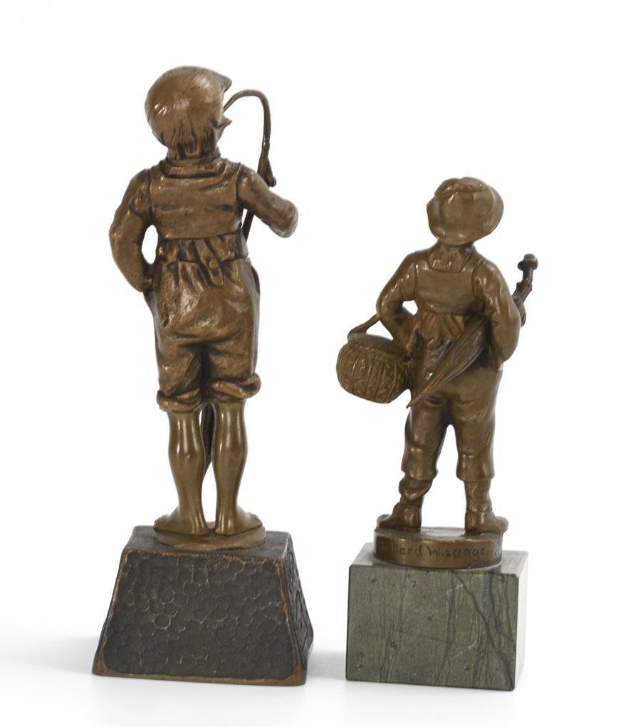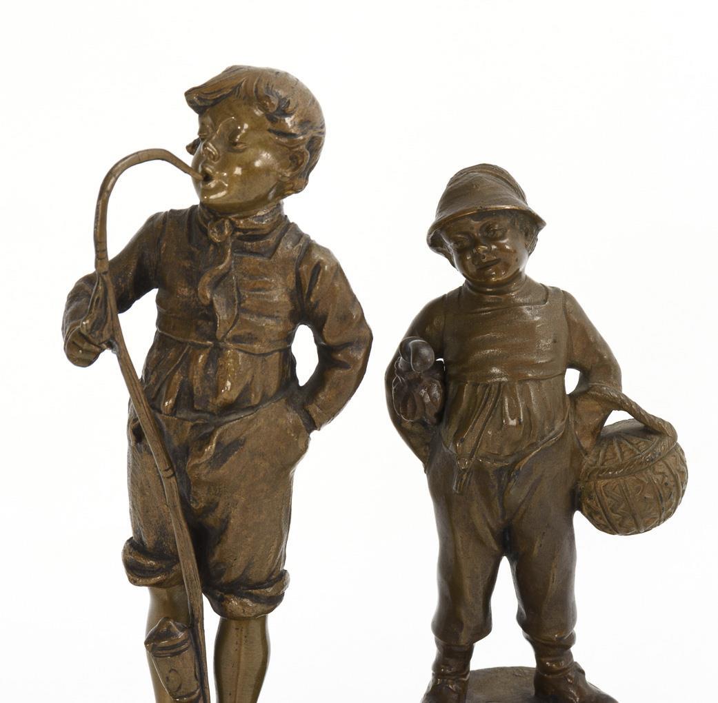 2 statuettes: boy with tobacco pipe and boy with umbrella