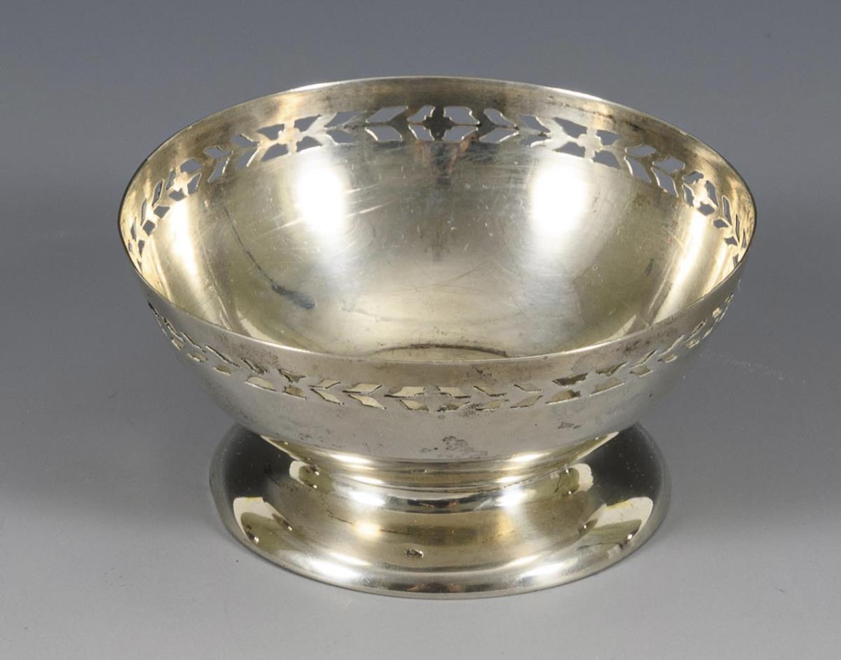Round bowl with leaf-shaped openwork rim. / Oval bowl with gingko leaves. / Oval pierced bowl. Signs of use, 1x soldered.