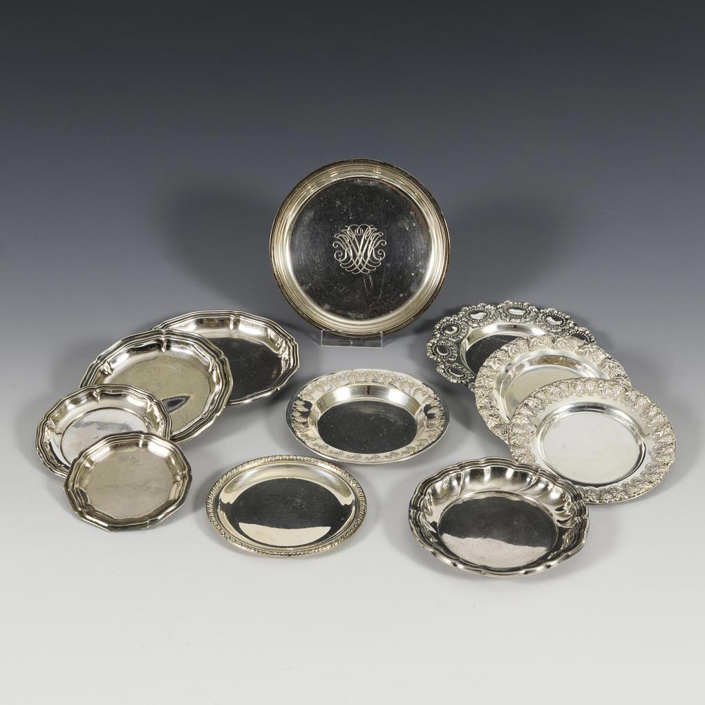 Silver (fineness mostly 800, 4x 925). Ø 8 - 12 cm. 391 g (10 x).
