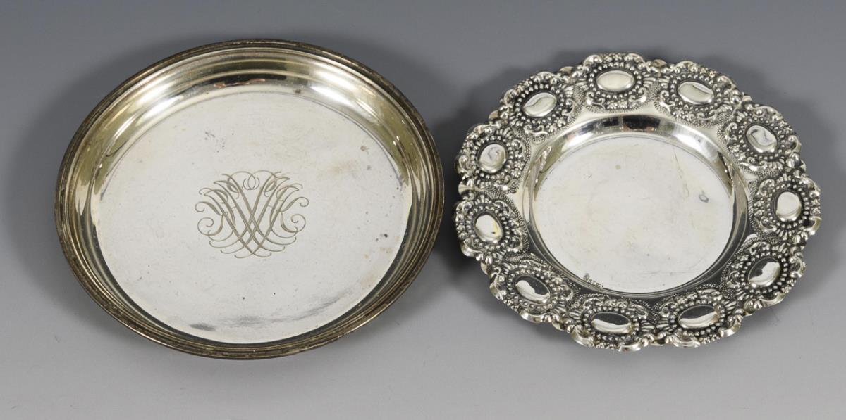 Various round plates, 1x silver plated. Signs of use.