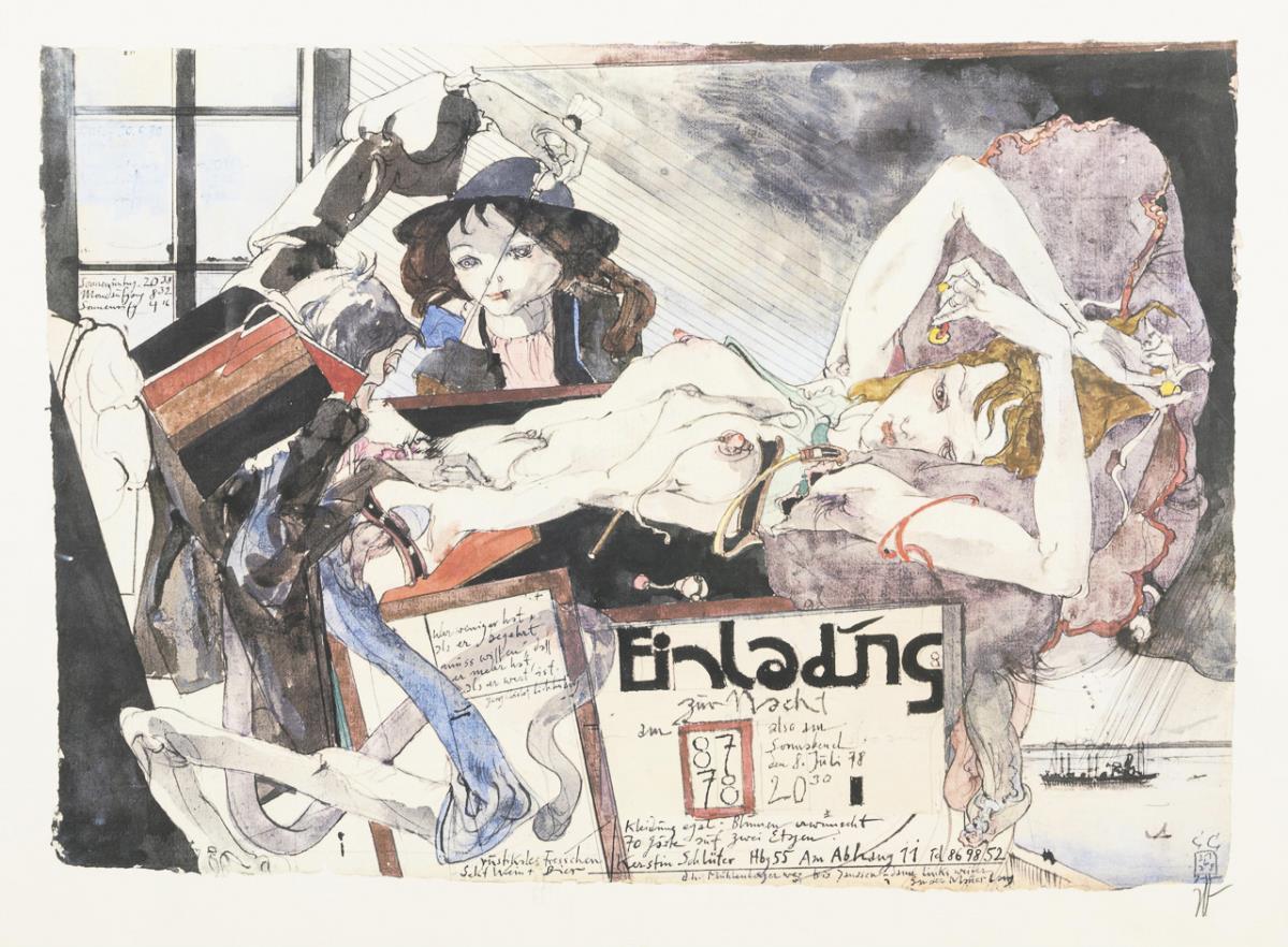 Invitation poster on the occasion of the birthday of Kerstin Schlüter, the artist's partner. Upper margin somewhat creased.