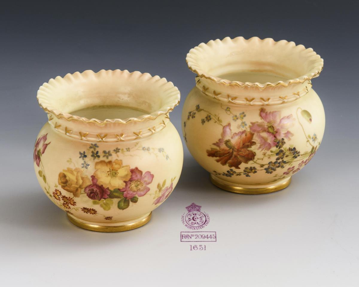 2 vases with floral painting. Worcester.