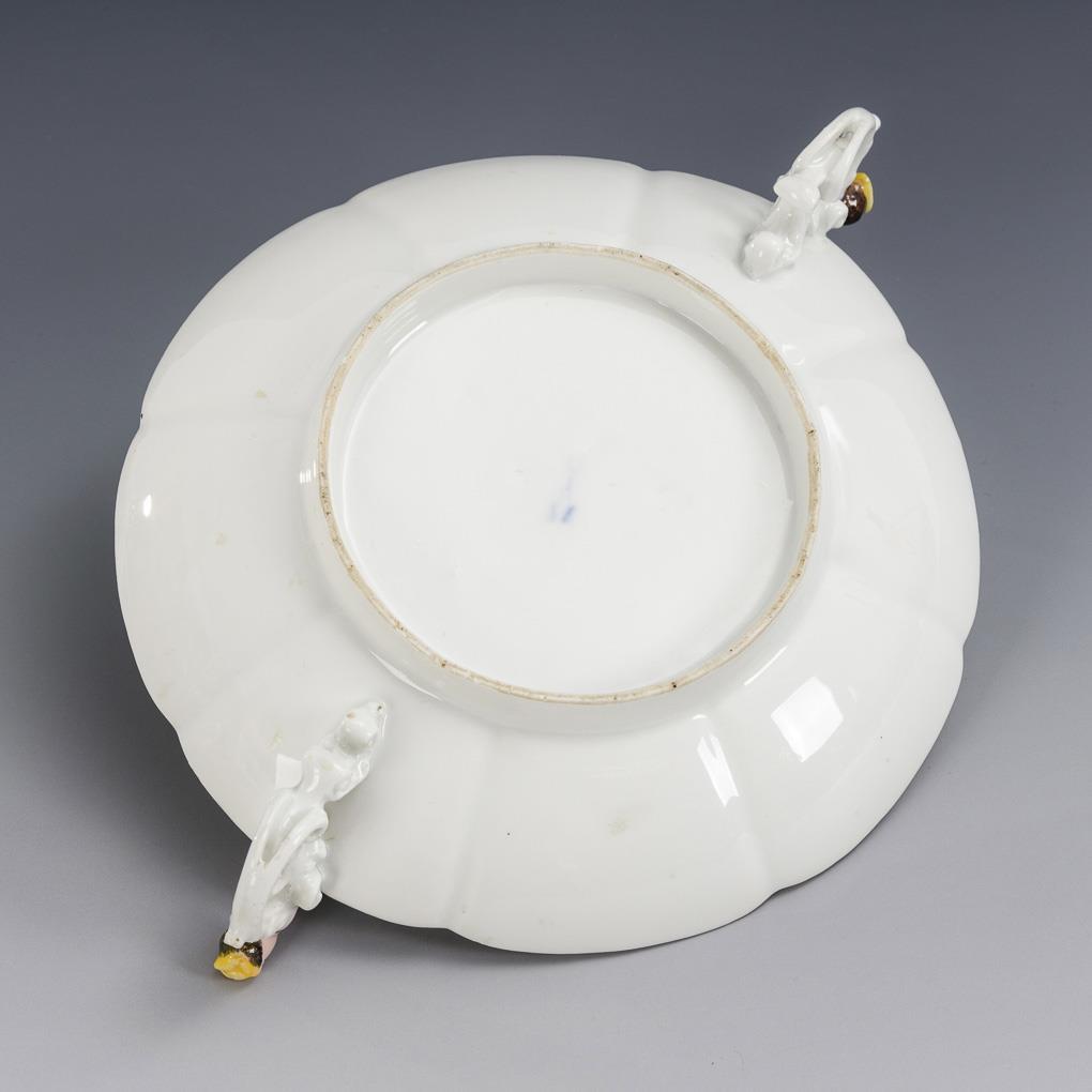 Multi-purpose saucer with delicate female head handles, in the mirror ominaeshi decoration with butterfly. 1 handle restored.