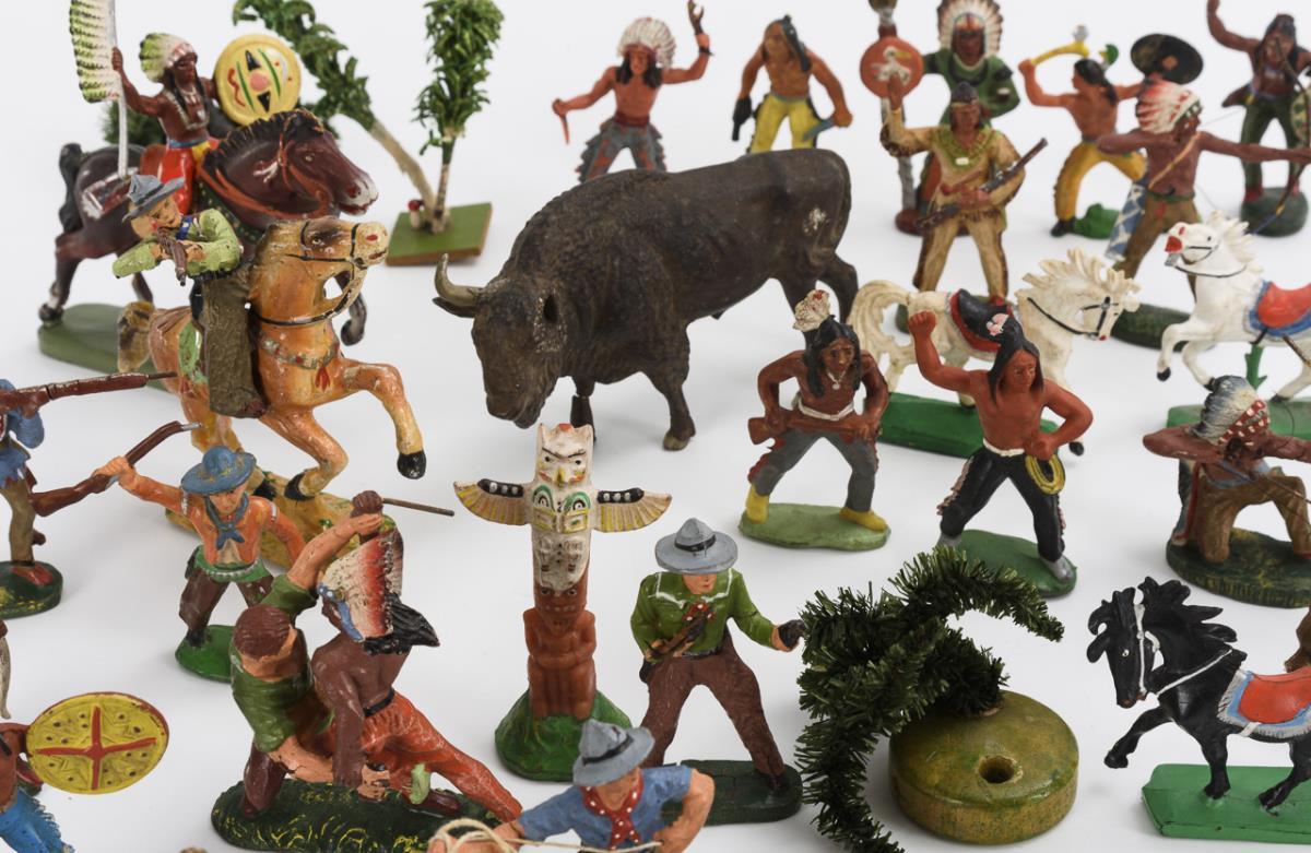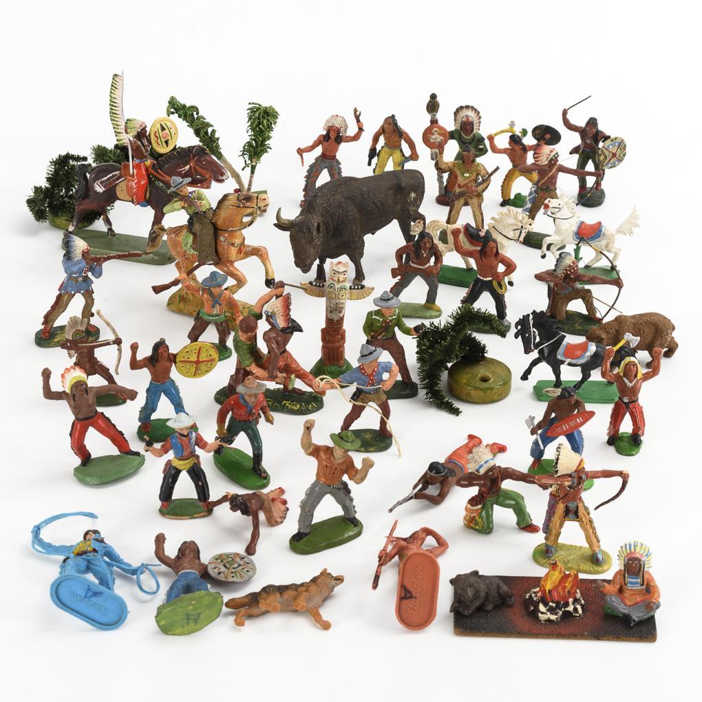 Approx. 42 figures, plus campfire and 3 trees / bushes. Played, small defects.