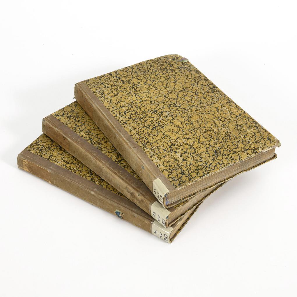 6 volumes in 3 books. Approx. 170 pages per year, with illustrations, in half cloth binding. Slight signs of age.