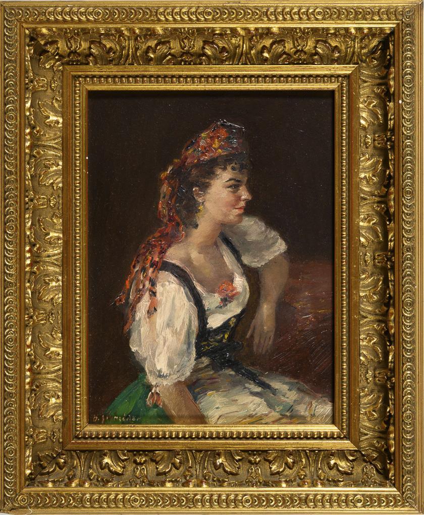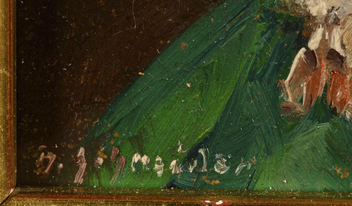 Oil/painted cardboard. Signed lower left. Circa 1900.