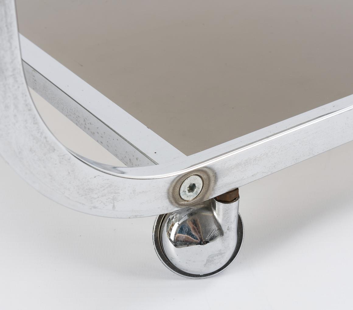 Wheeled tea trolley (so-called desserts) made of chromed frame with original shelves of smoked glass. Slight signs of age / use.