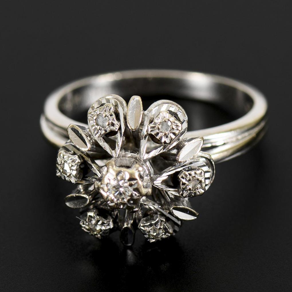 White gold 585 stamped. Stones total 0.45 ct. Ring size 55.