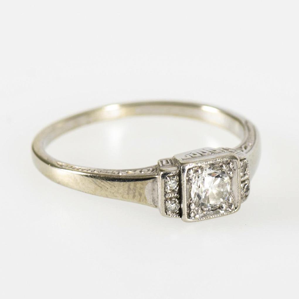 Small art deco ring with old cut diamond and diamonds.