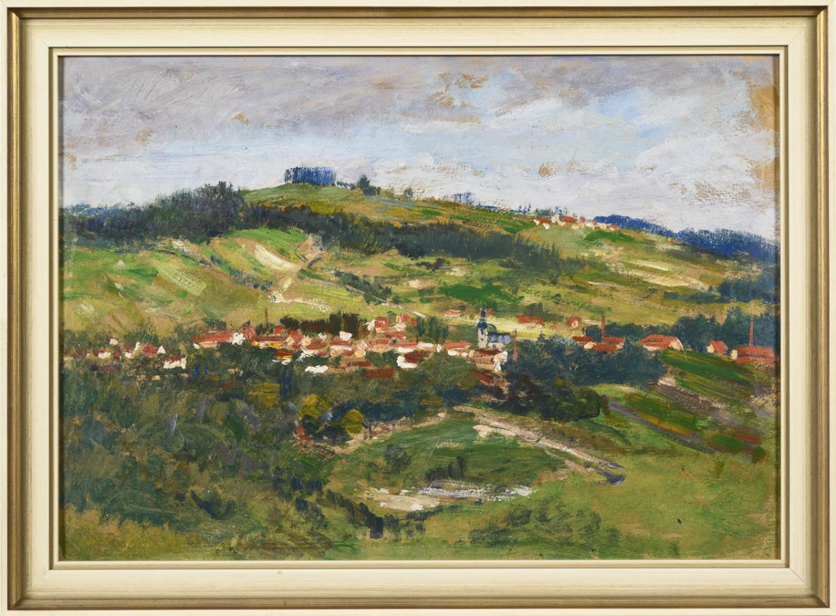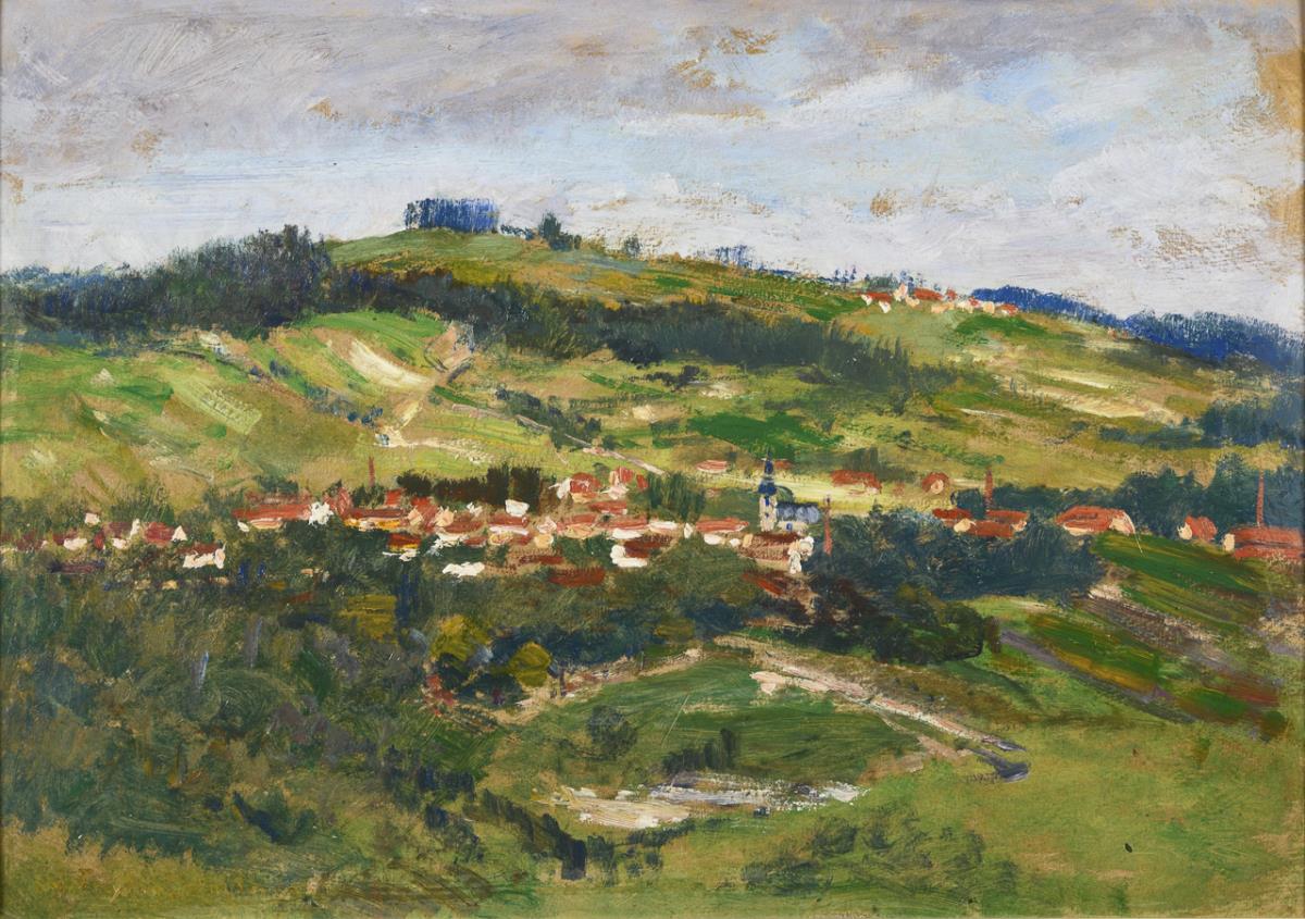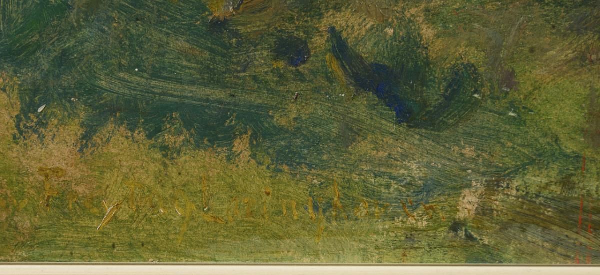Oil/painted cardboard. Signed lower left, titled on verso.