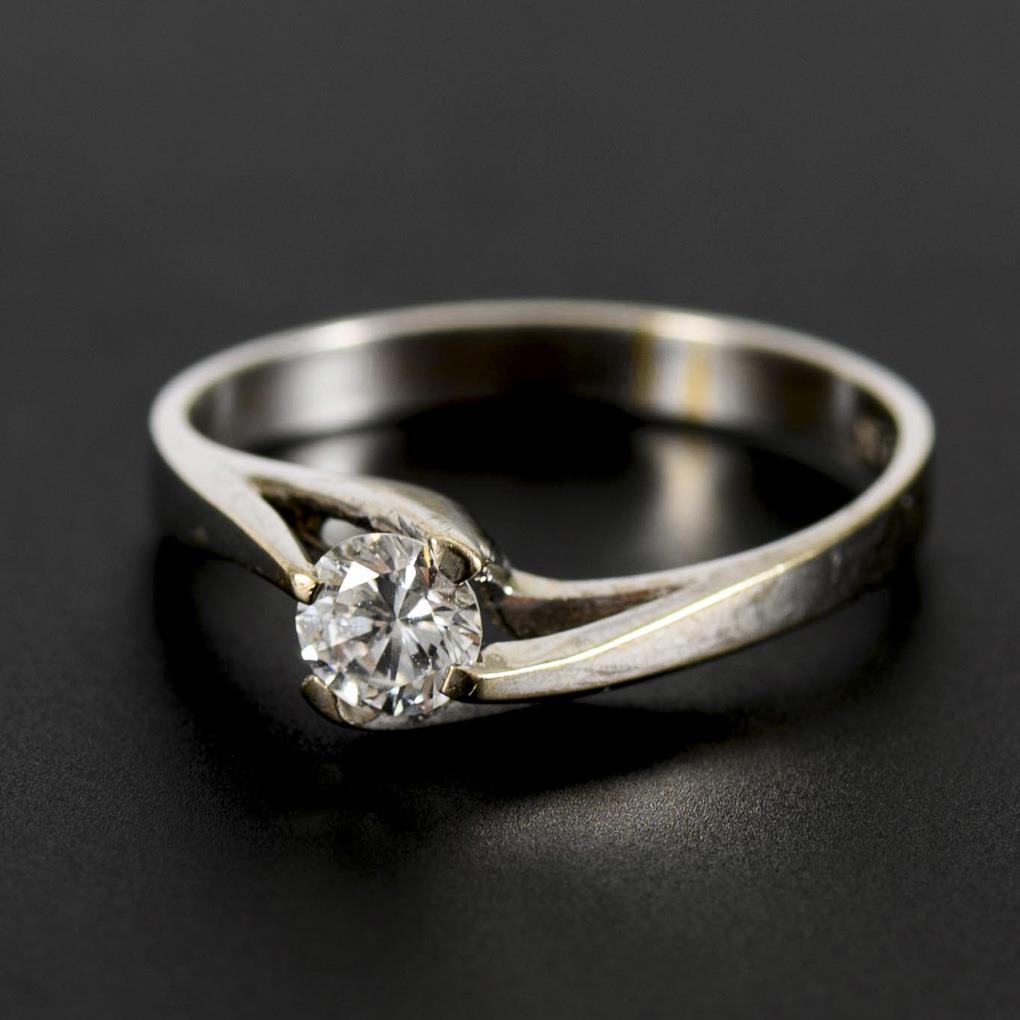 White gold 750 stamped. Brilliant cut diamond 0.25 ct. Ring size 56. 2.7 g.