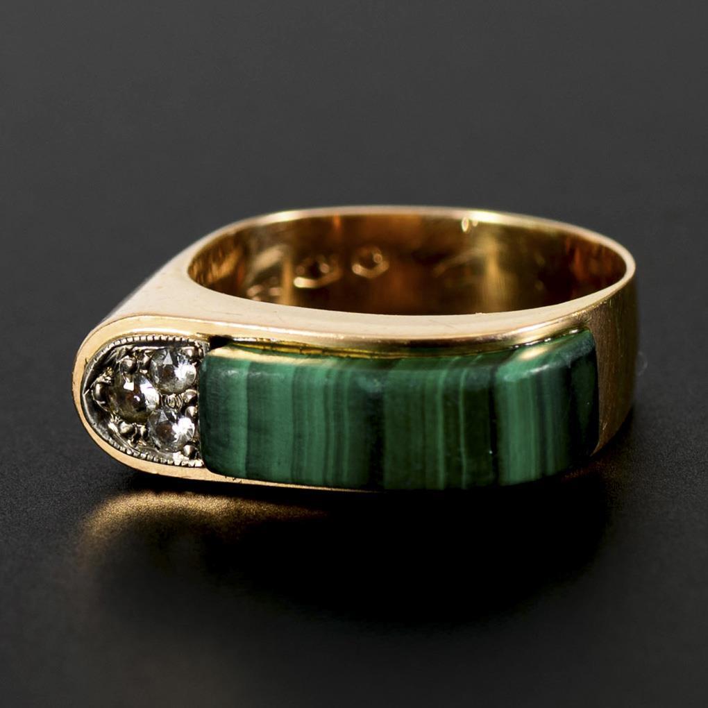 Band ring with malachite.