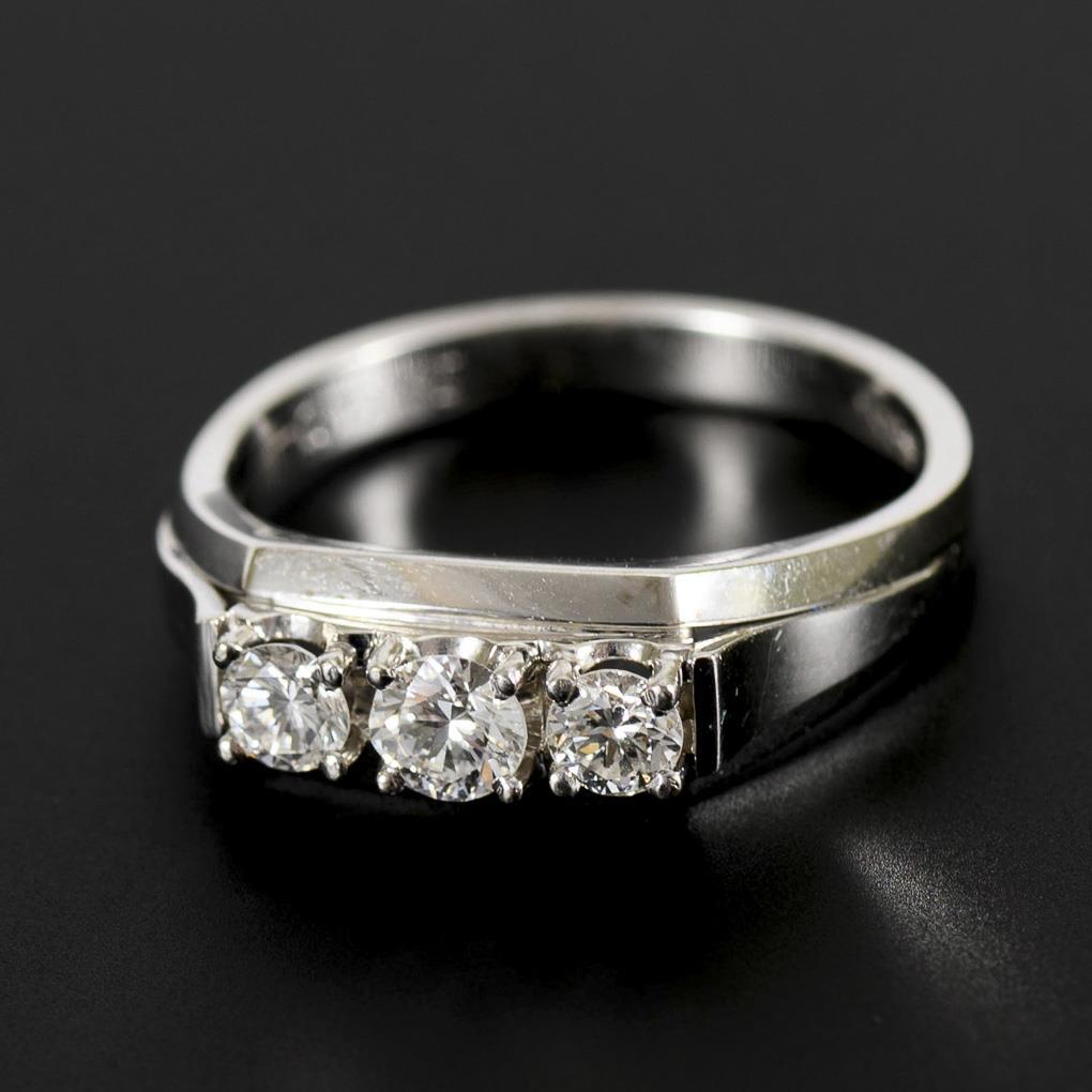White gold 585 stamped. Diamonds total approx. 0.75 ct/si. Ring size 62. 6.3 g.